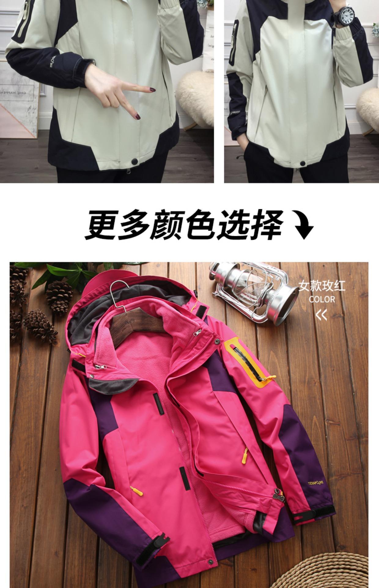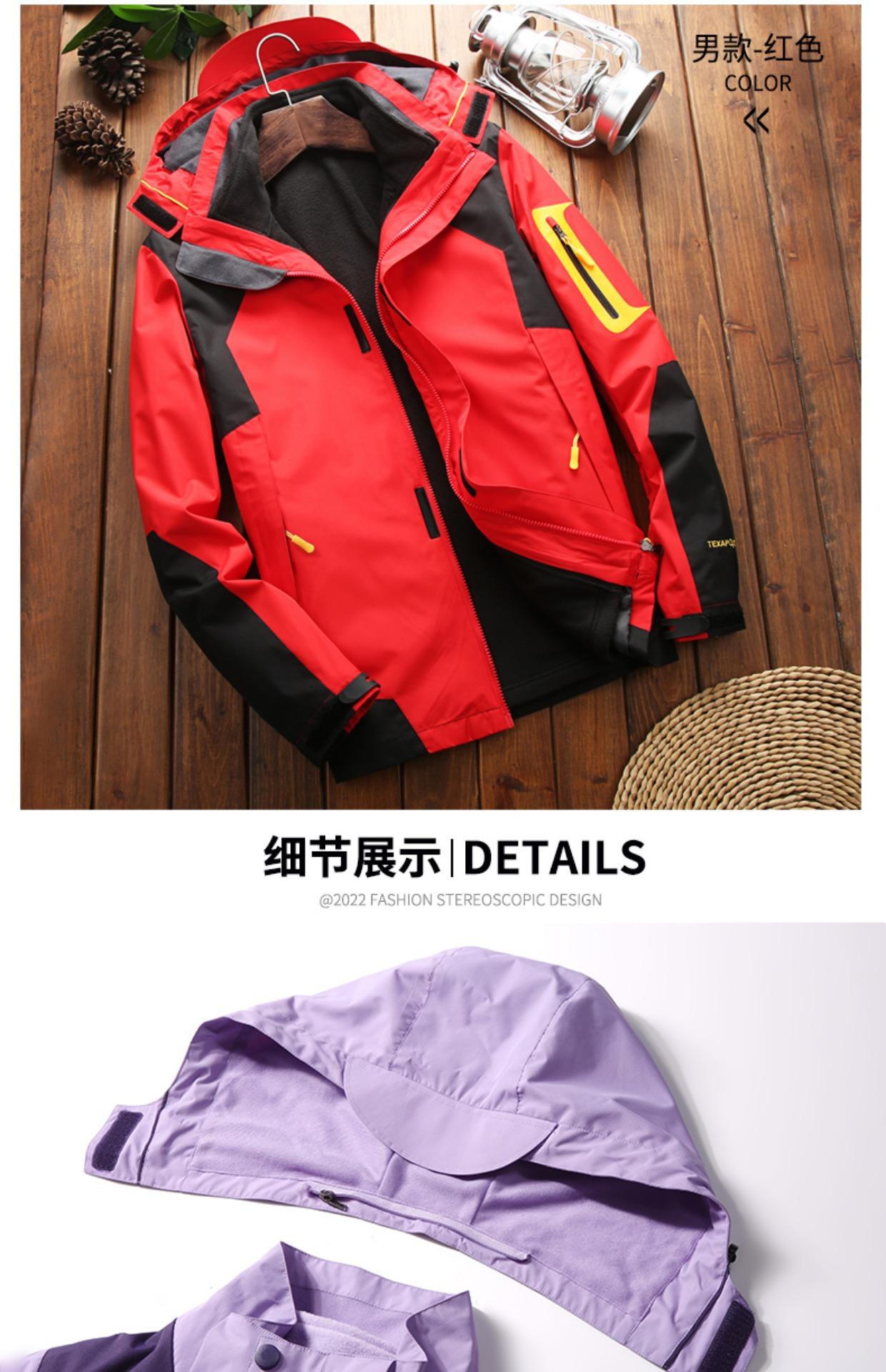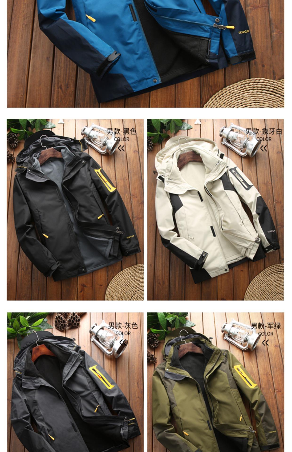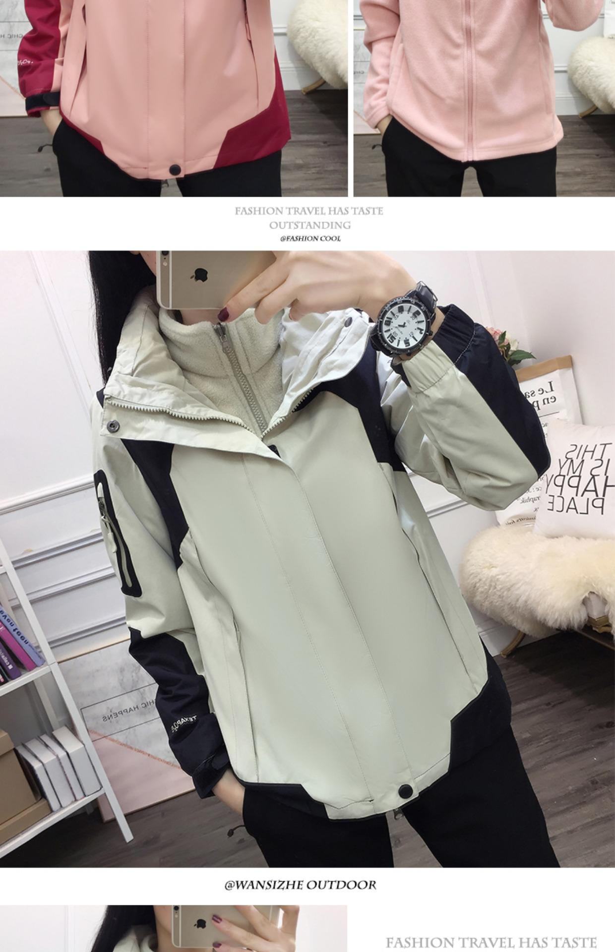 Ropa Rush para Exterior Conjunto Desmontable de Dos Piezas Tres en Uno Marca de Moda Impermeable Forrado de Polar Grueso en Contraste Chaqueta de Montaña