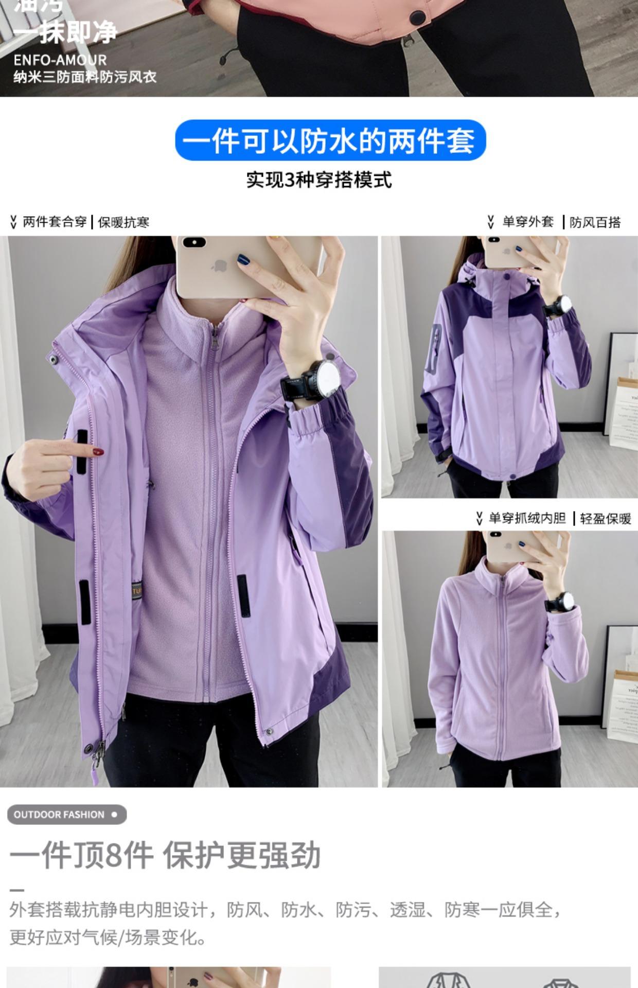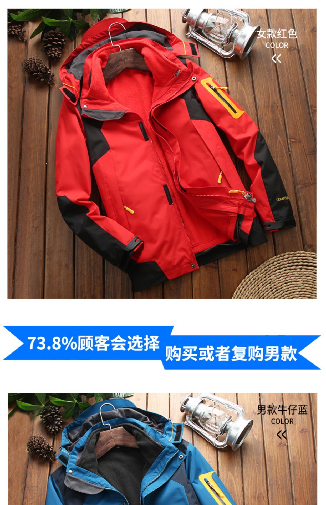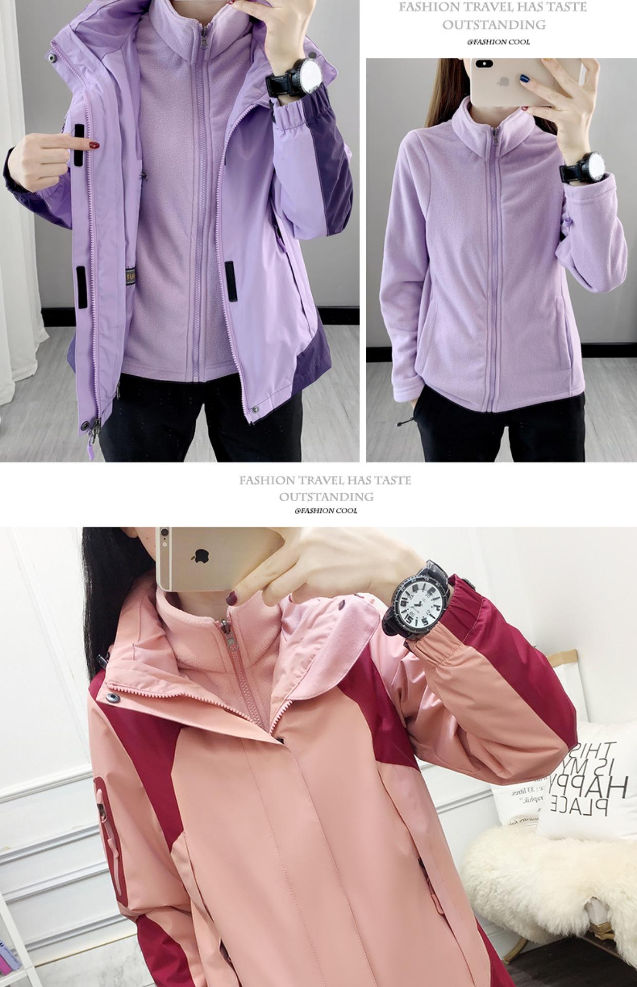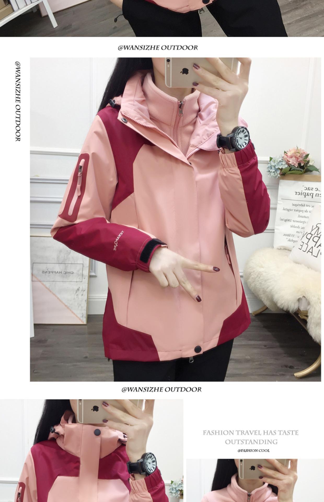 Ropa Rush para Exterior Conjunto Desmontable de Dos Piezas Tres en Uno Marca de Moda Impermeable Forrado de Polar Grueso en Contraste Chaqueta de Montaña