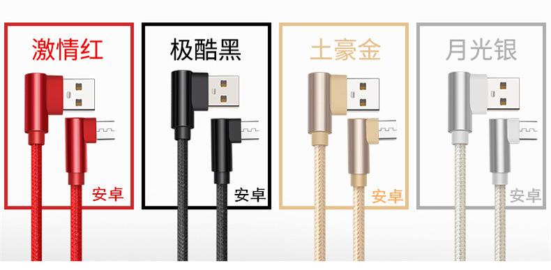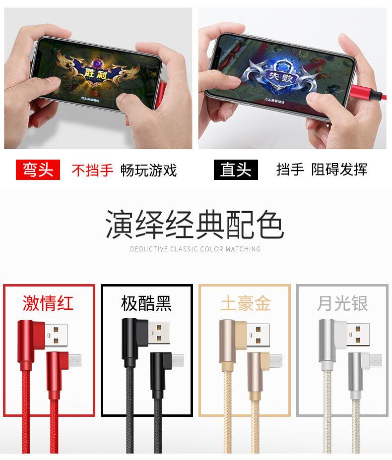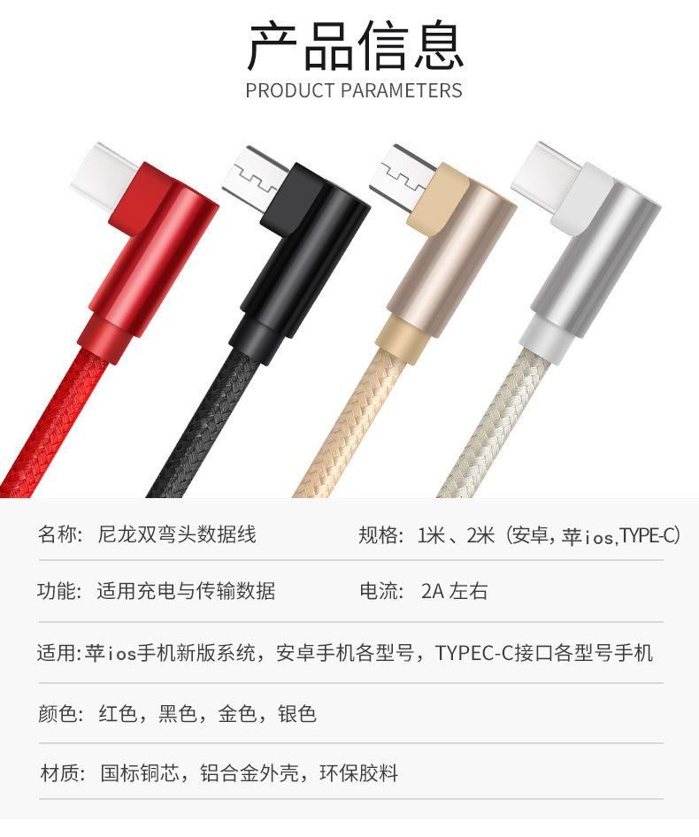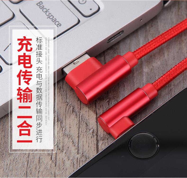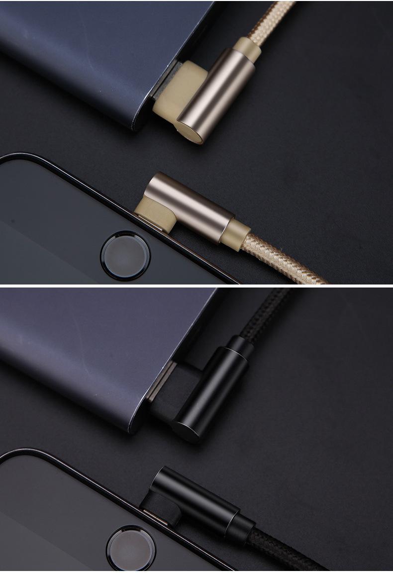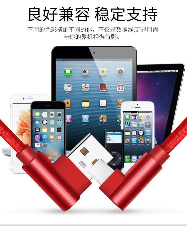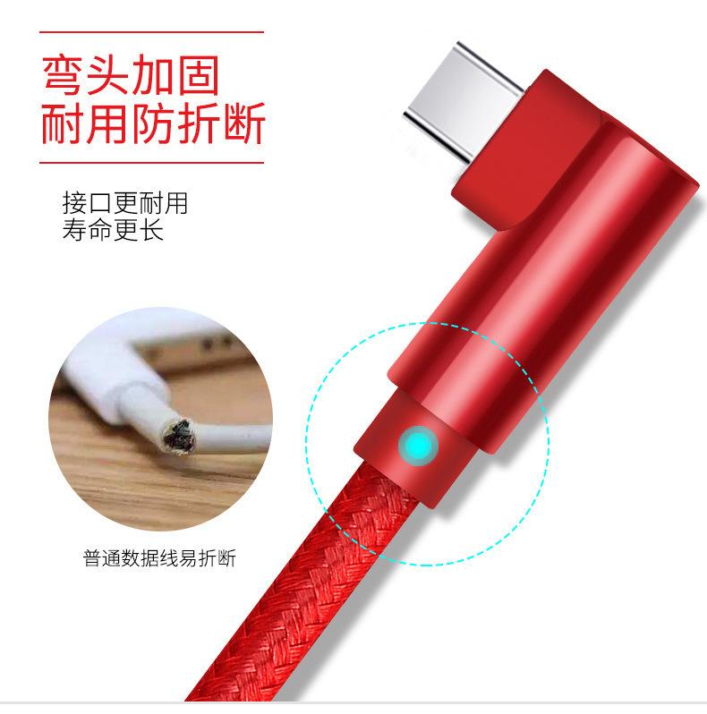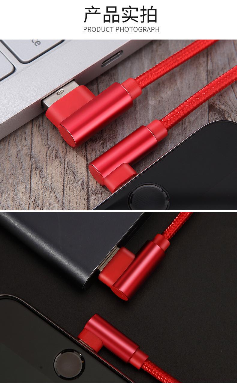 Cable de datos trenzado de doble codo, adecuado para teléfonos móviles Apple Android tipo C, cable de carga rápida de codo.