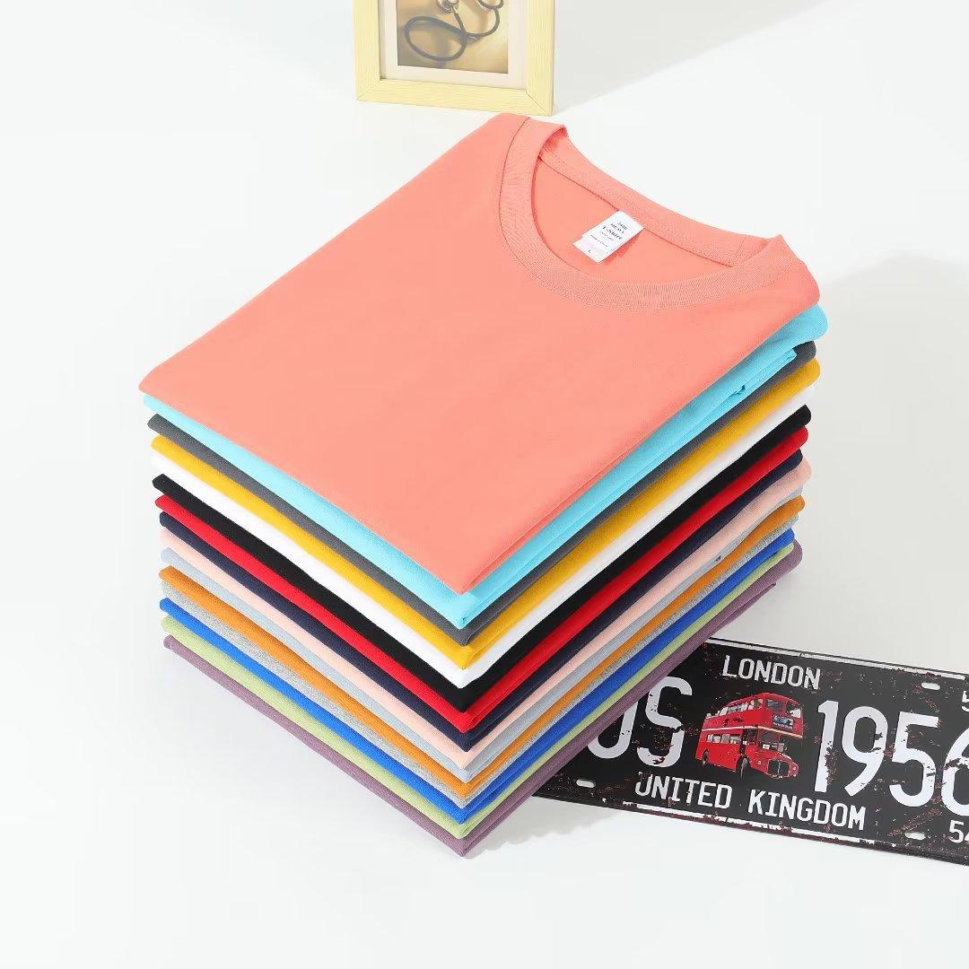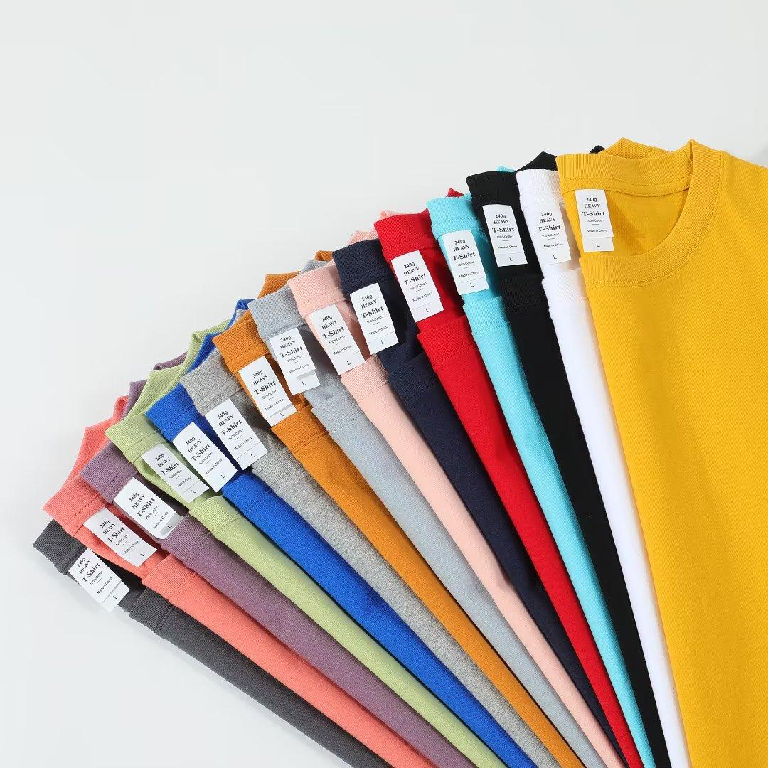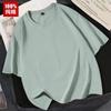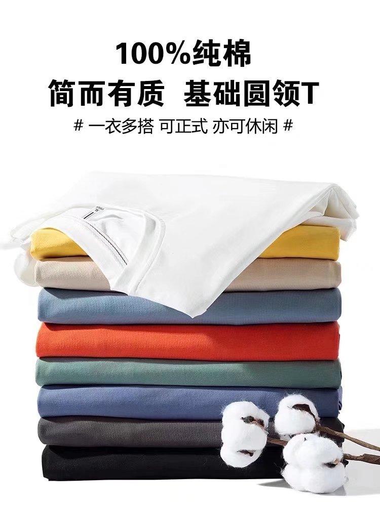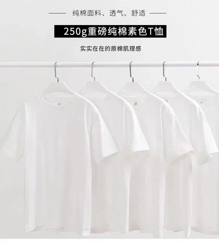 Playera de manga corta de algodón peinado de color sólido pesado de 250 g de algodón de fibra larga de Xinjiang, marca de moda básica Joker holgada para hombre y mujer