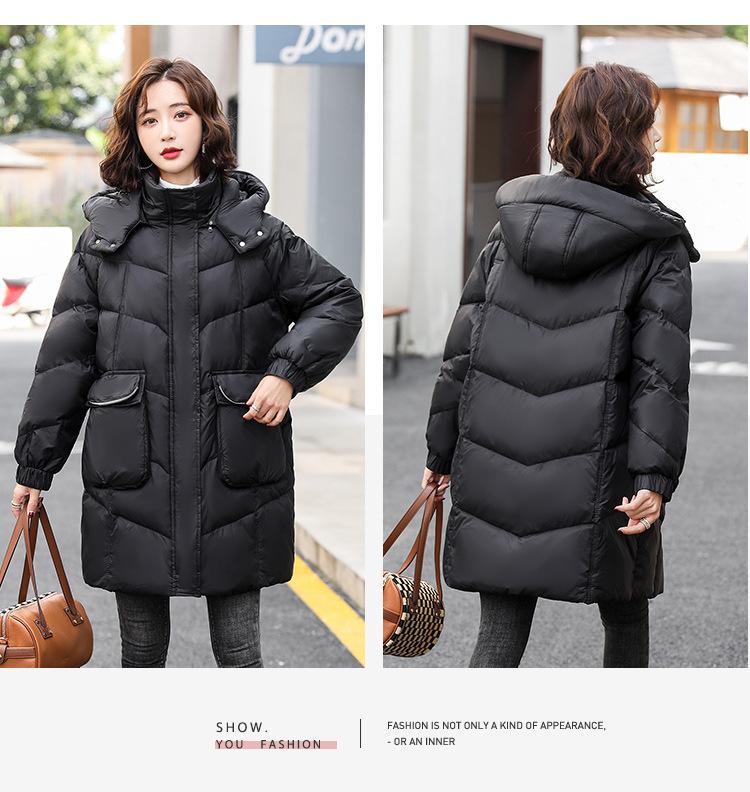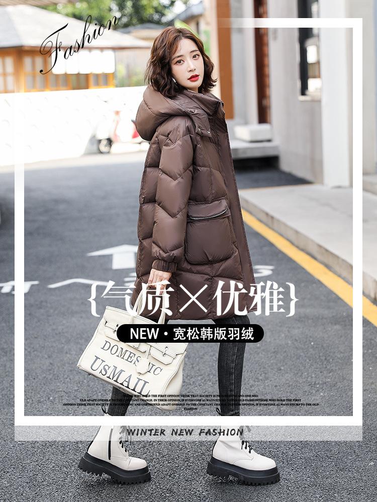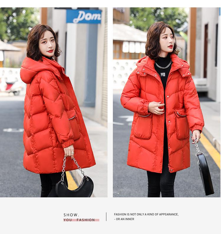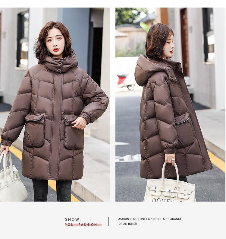 Chaqueta de plumón de pato blanco de moda para mujer, nueva chaqueta coreana de invierno 2023, holgada, de longitud media y con capucha.