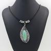 Collar bohemio de hojas de playa con colgante de hoja turquesa vintage, estilo transfronterizo europeo y americano, con cuerda de cuero, collar corto
