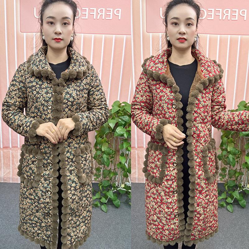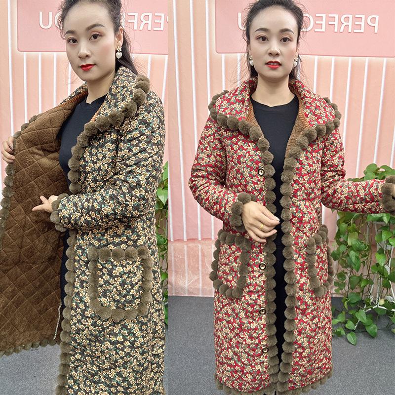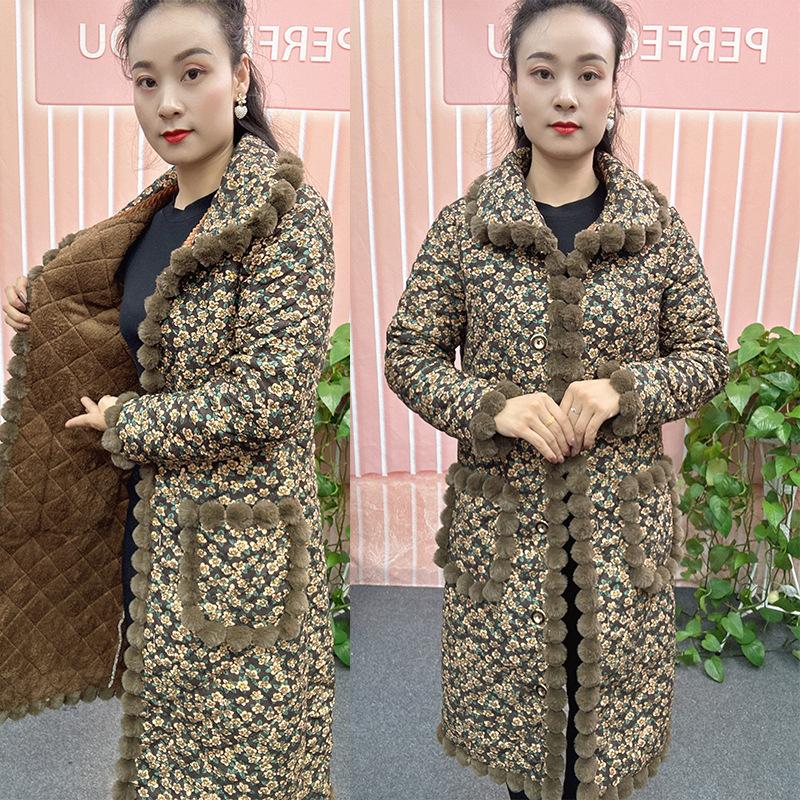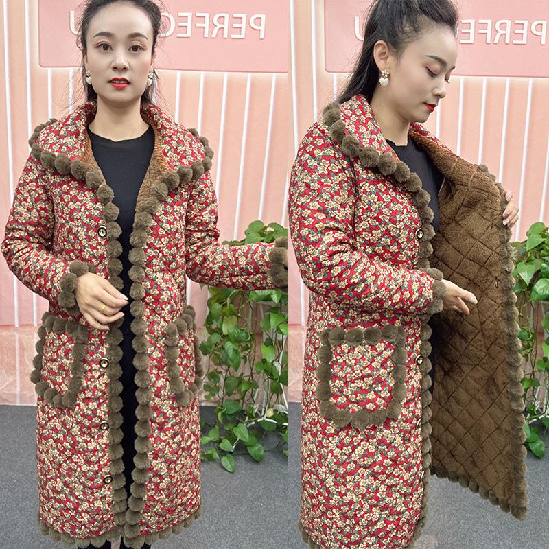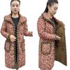 Abrigo nuevo de invierno 2023 acolchado de algodón para mujer, forrado de vellón, grueso, de largo medio, acolchado de algodón, estilo occidental, abrigo floral hasta la rodilla, cálido abrigo acolchado de algodón
