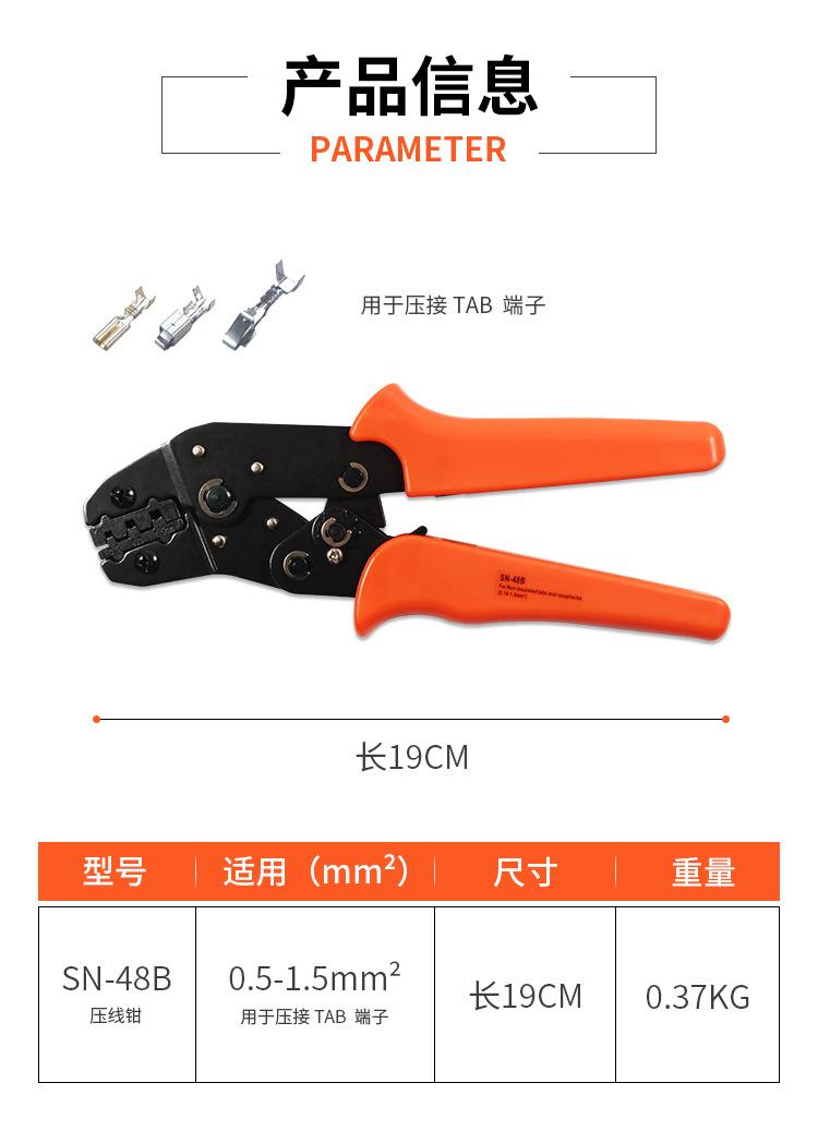 Sn-48B Alicates de crimpado enchufables para coche con resorte Alicates de crimpado para terminales preaislados Alicates de crimpado con carraca Herramientas de mano