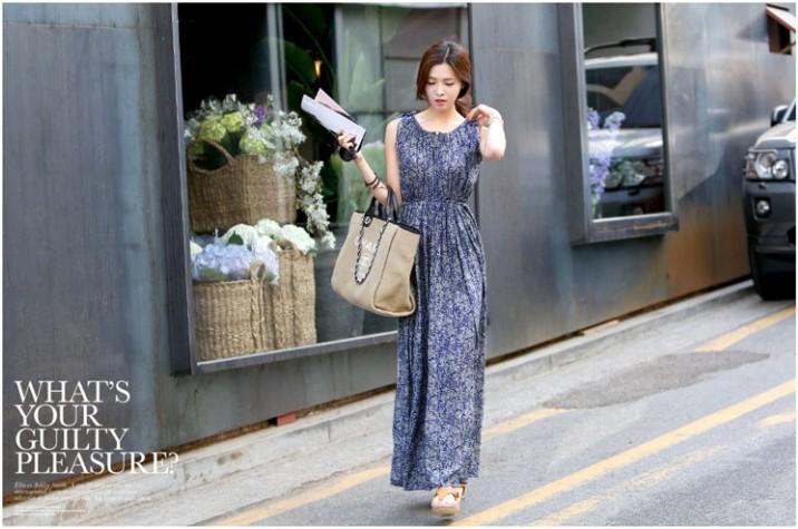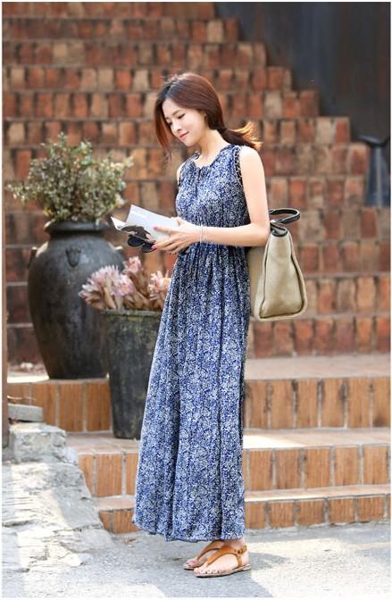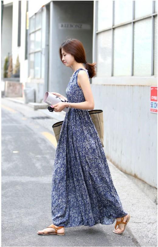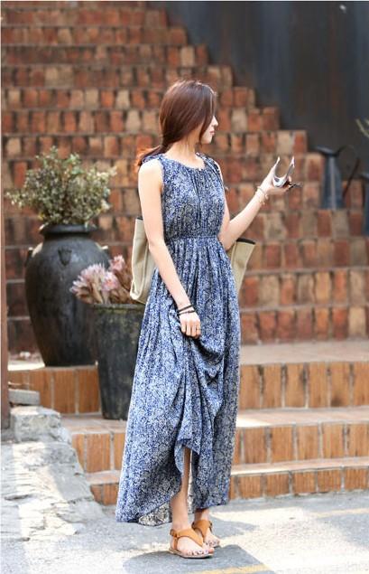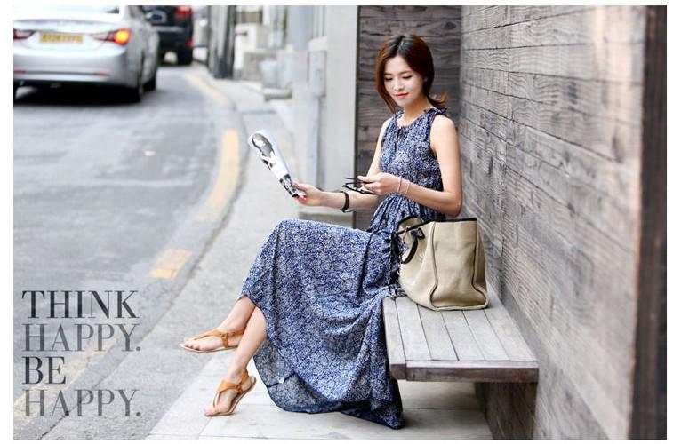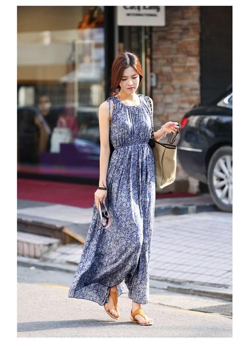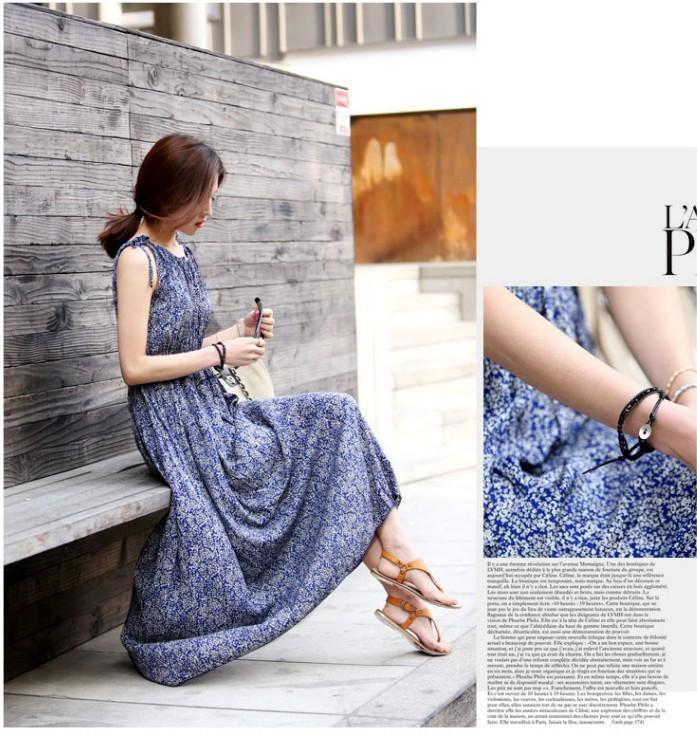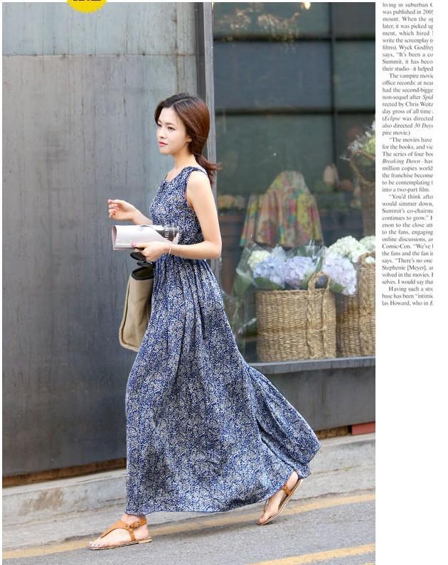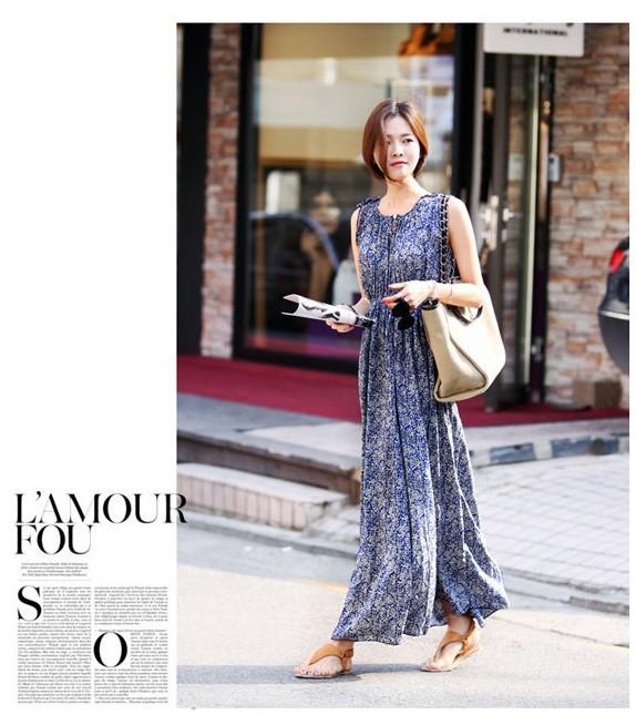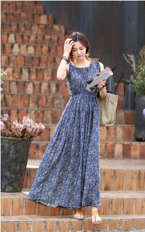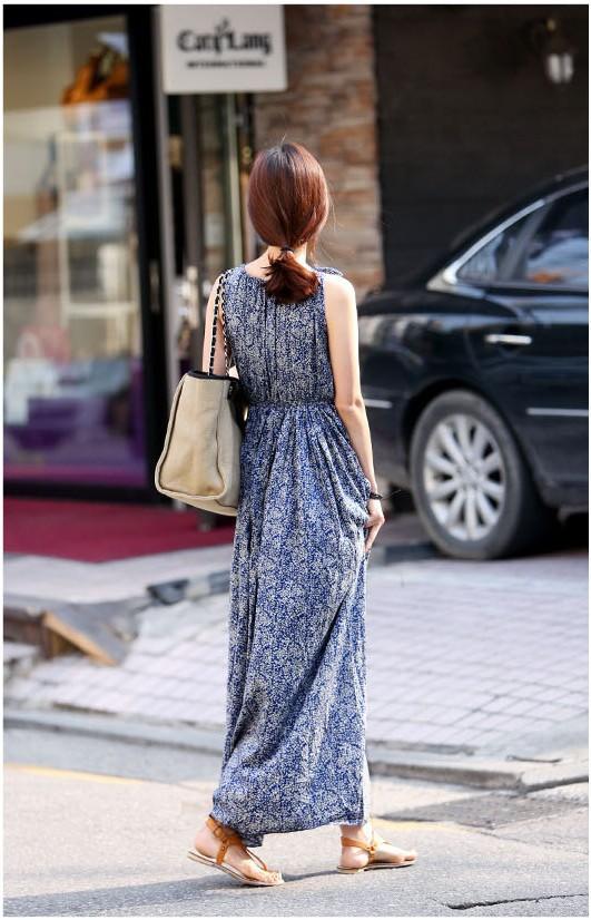 Dropshipping 2023 Nuevo Vestido Floral de Verano para Mujer sin Mangas Falda Larga Diario Casual Falda Bohemia Tendencia