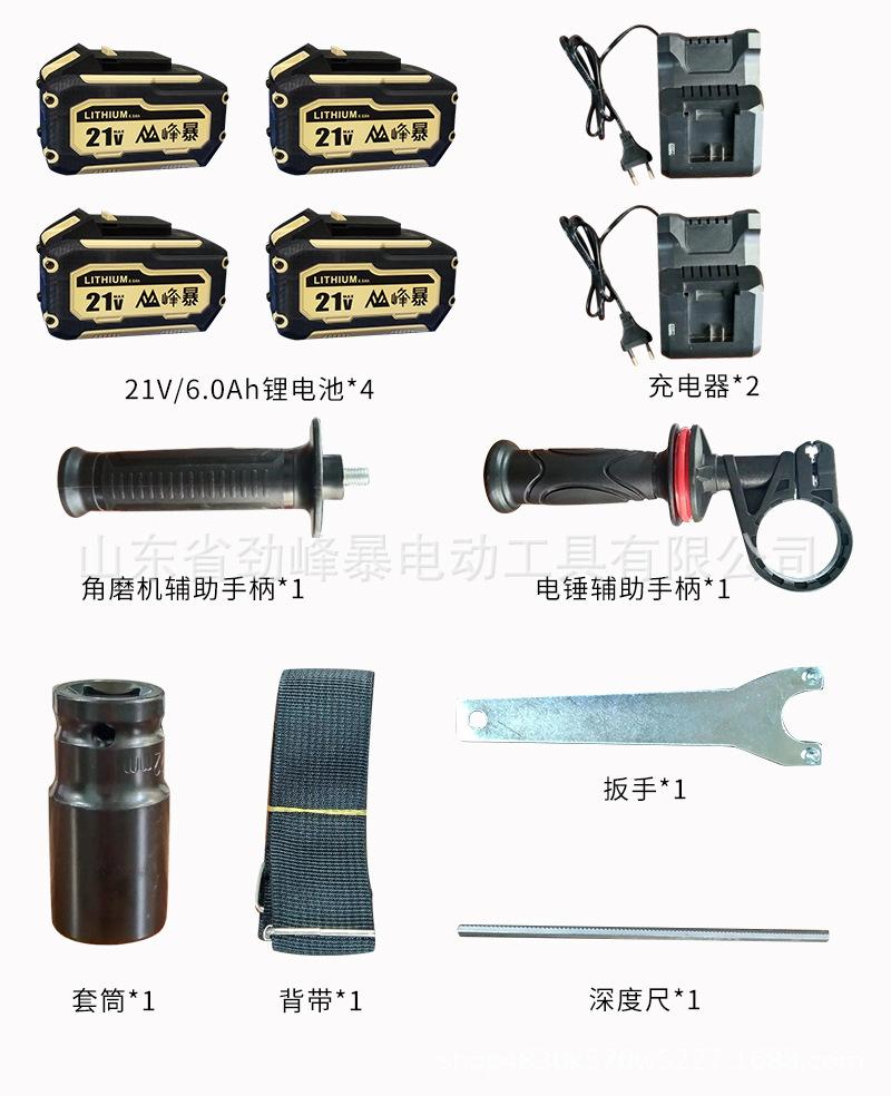 National standard lithium battery four-piece set 8210 electric drill, 380n electric wrench, 8020 electric hamm...