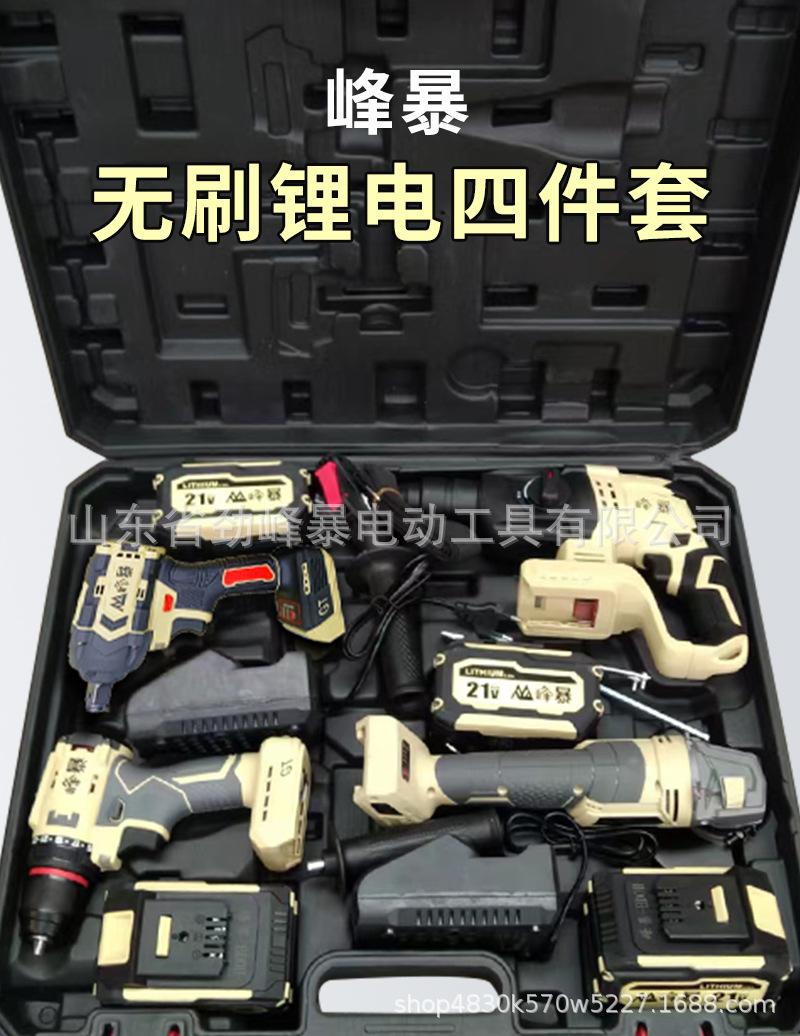 Nuevo Taladro de Impacto Eléctrico de Litio Fengbao Amoladora Angular Taladro Eléctrico Llave Juego de Cuatro Piezas Juego de Herramientas Eléctricas de Litio sin Escobillas