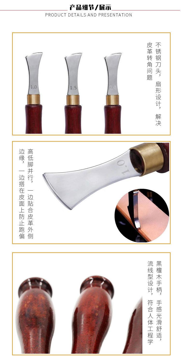 Herramientas de cuero Línea de borde de cuero Prensa de borde con mango rojo Línea de borde en forma de abanico Prensa de borde de ranura poco profunda