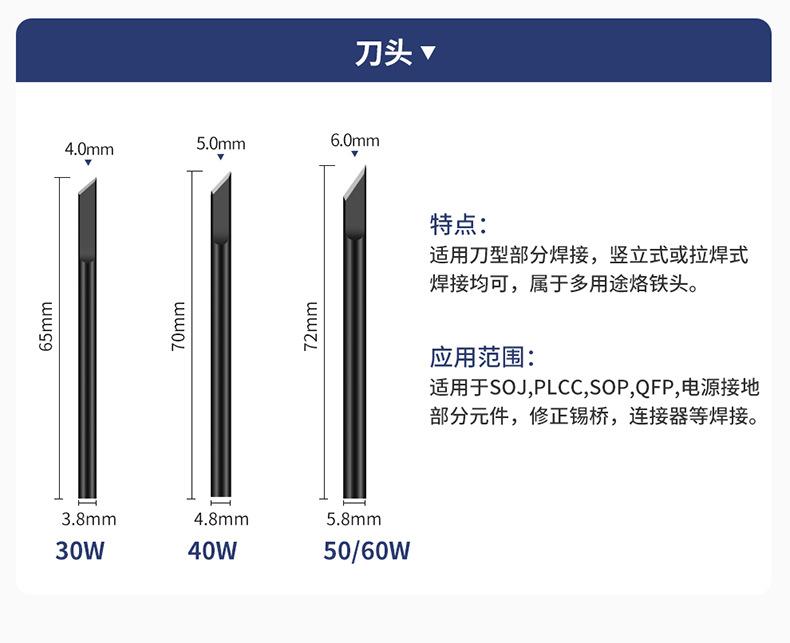 External heating 30W pointed toe, External heating 30W Super tip, External heating 30W horseshoe oblique head,...