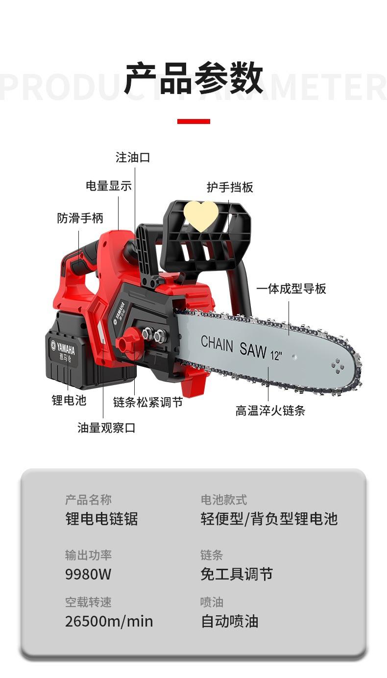 Motosierra eléctrica recargable, pequeña, portátil, de litio, de alta potencia, para uso doméstico, para madera al aire libre, para tala eléctrica