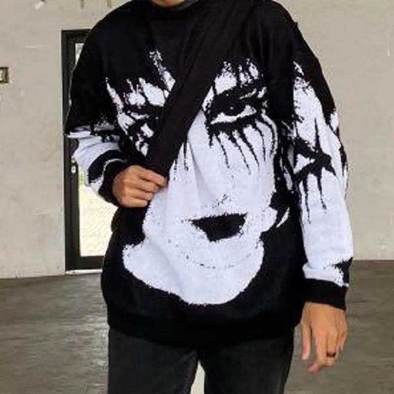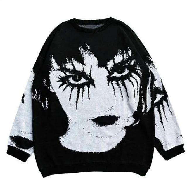 Suéter estilo hip hop estilo Y2K para hombre y mujer, estilo gótico, estilo Harajuku, otoño e invierno, tejido de punto callejero
