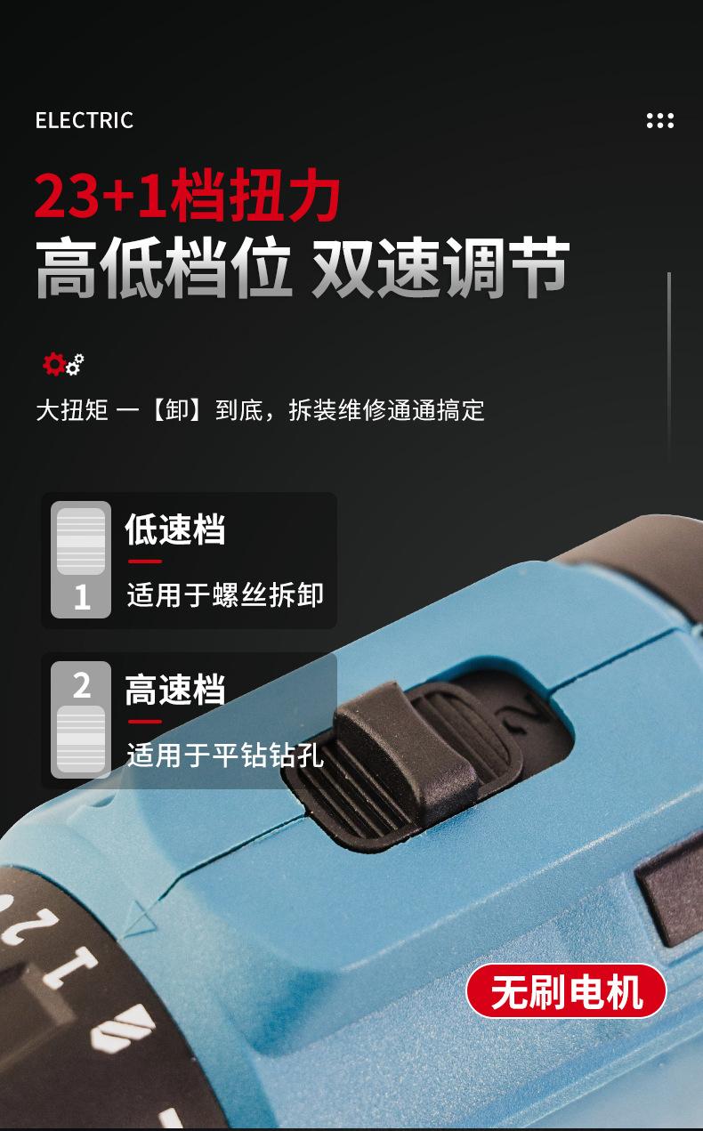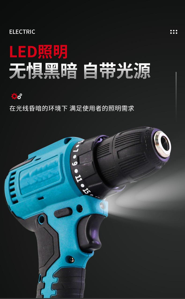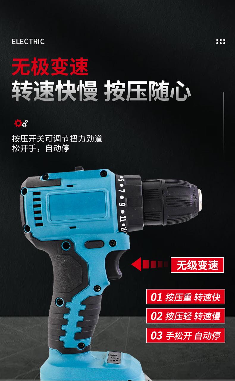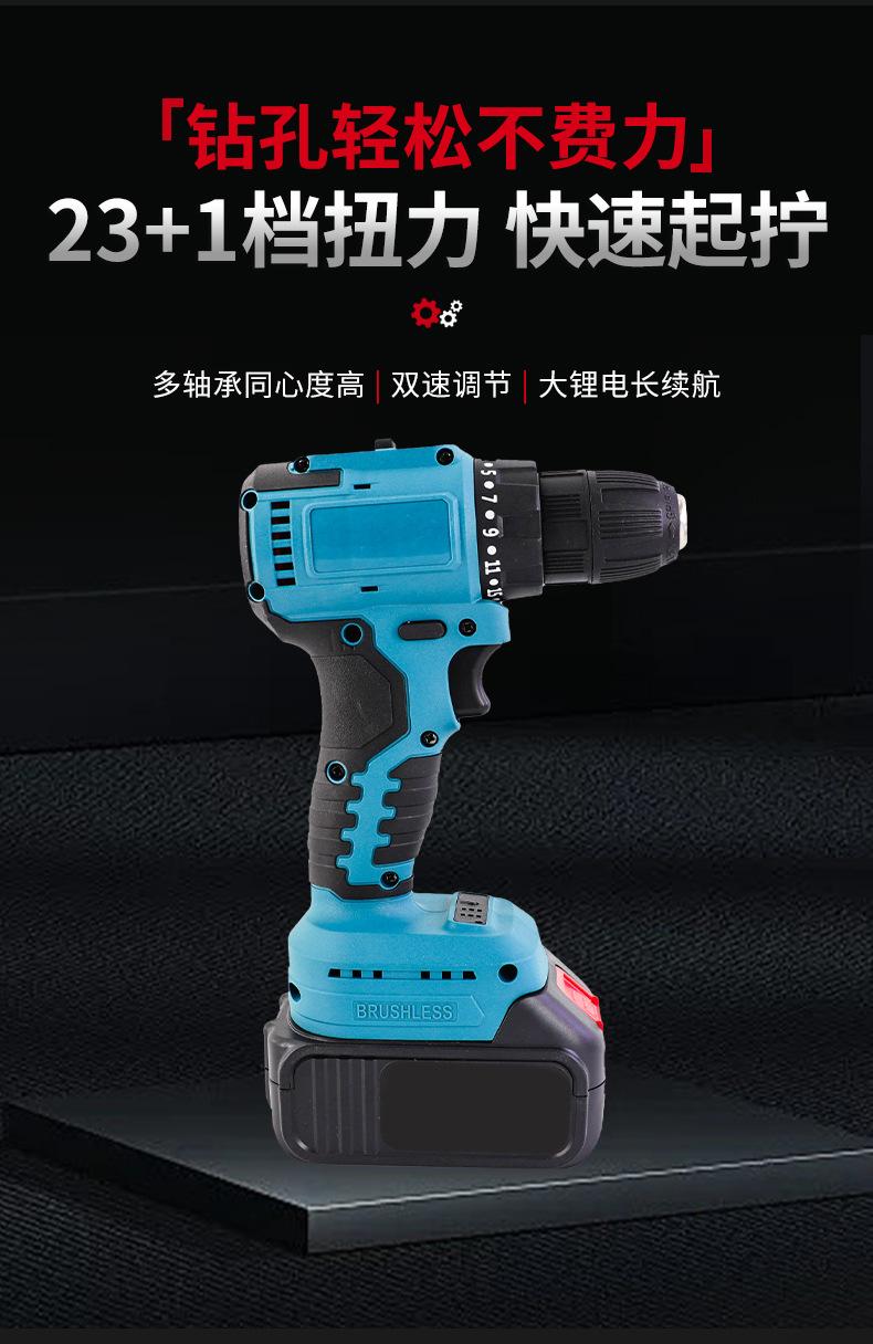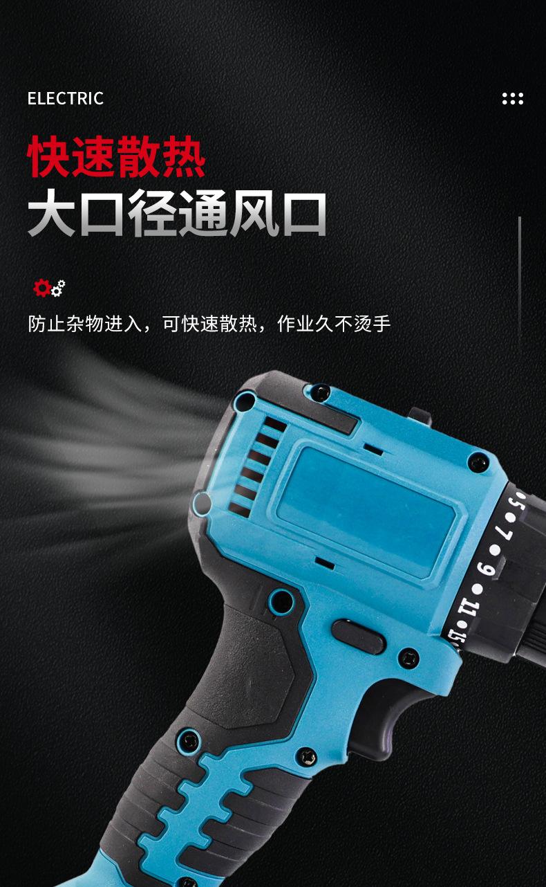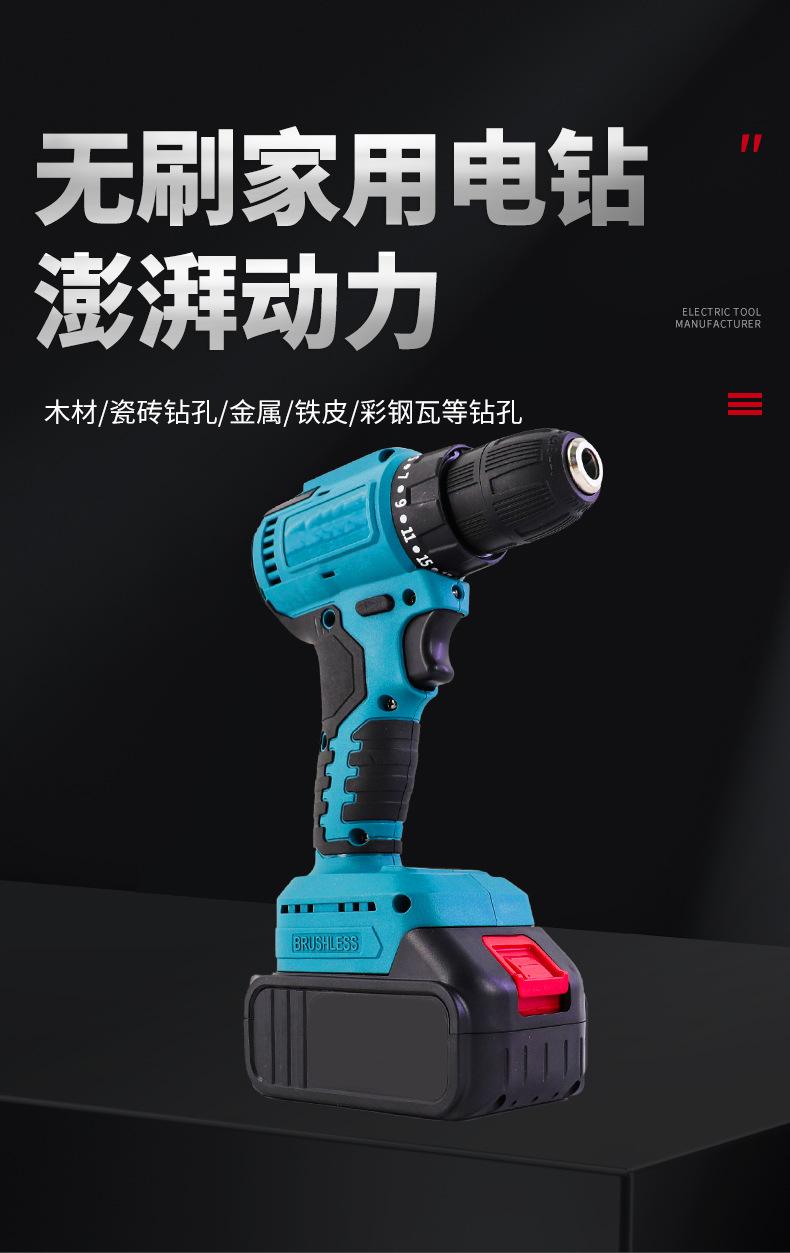 Taladro eléctrico de mano doméstico, taladro eléctrico de litio de alta potencia, multifuncional, carga sin escobillas, suministro al por mayor