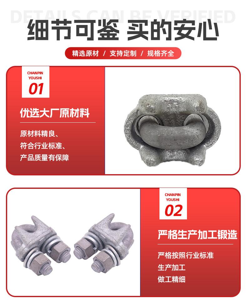 Venta al por mayor de fábrica abrazadera de cable de acero galvanizado en caliente GB ligera de alta resistencia hebilla accesorios de aparejo