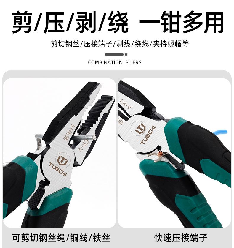 Alicates de punta fina multifuncionales, alicates para cables, alicates pelacables de grado industrial, alicates diagonales, alicates tigre para electricistas, alicates para crimpar cables.