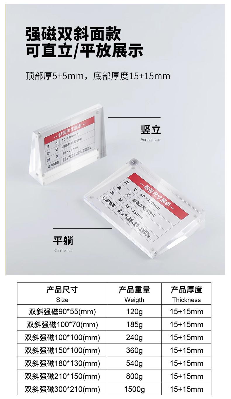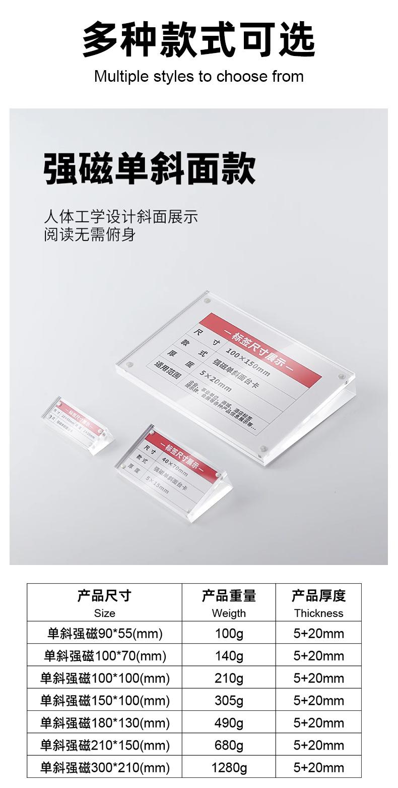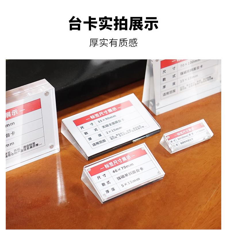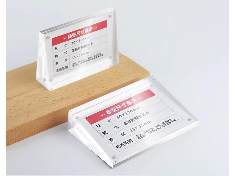 Acrílico al por mayor fuerte magnético tarjeta de mesa plano inclinado letrero de mesa magnético exhibición de doble cara precio marca precio de producto etiqueta