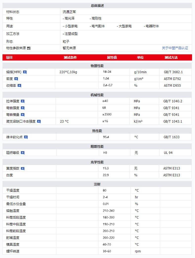 ABS Zhejiang Stonehua ZA0210 Grado de inyección rígido, fuerte y de alto brillo