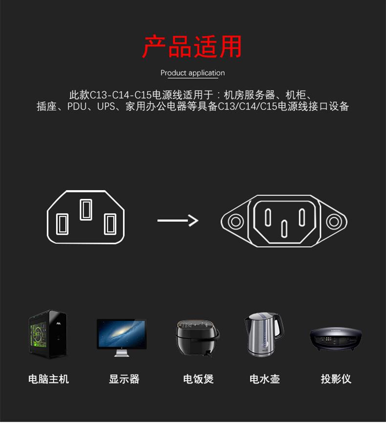 Cable de alimentación de cola C13 a C14 a C15 Cable de extensión de alimentación C13-C14-C15 Fuente de alimentación UPS para gabinete
