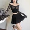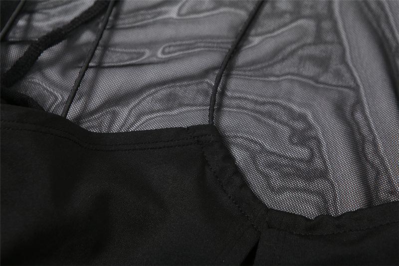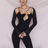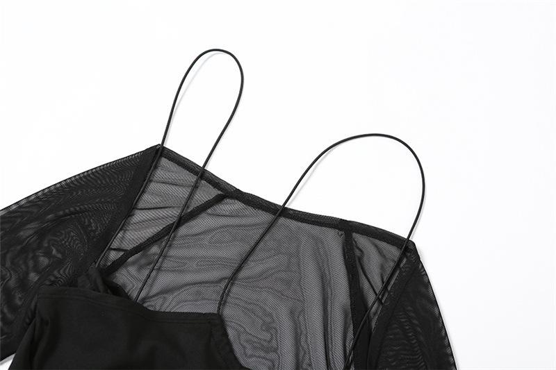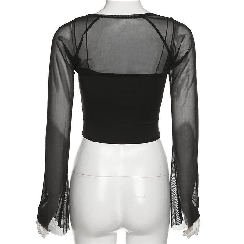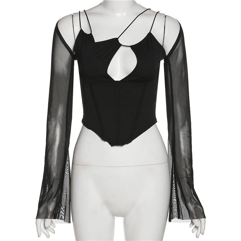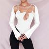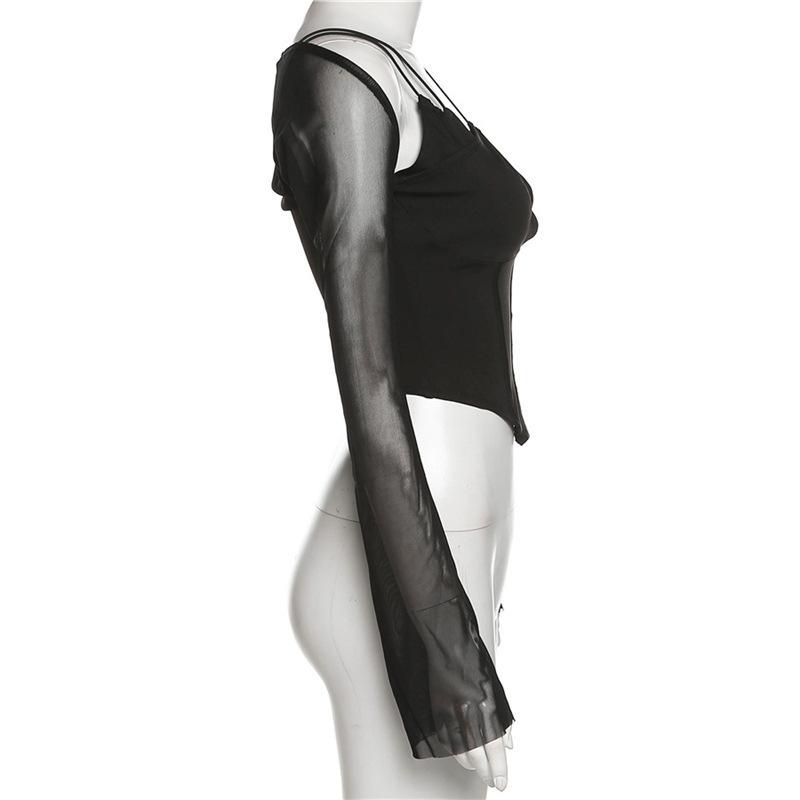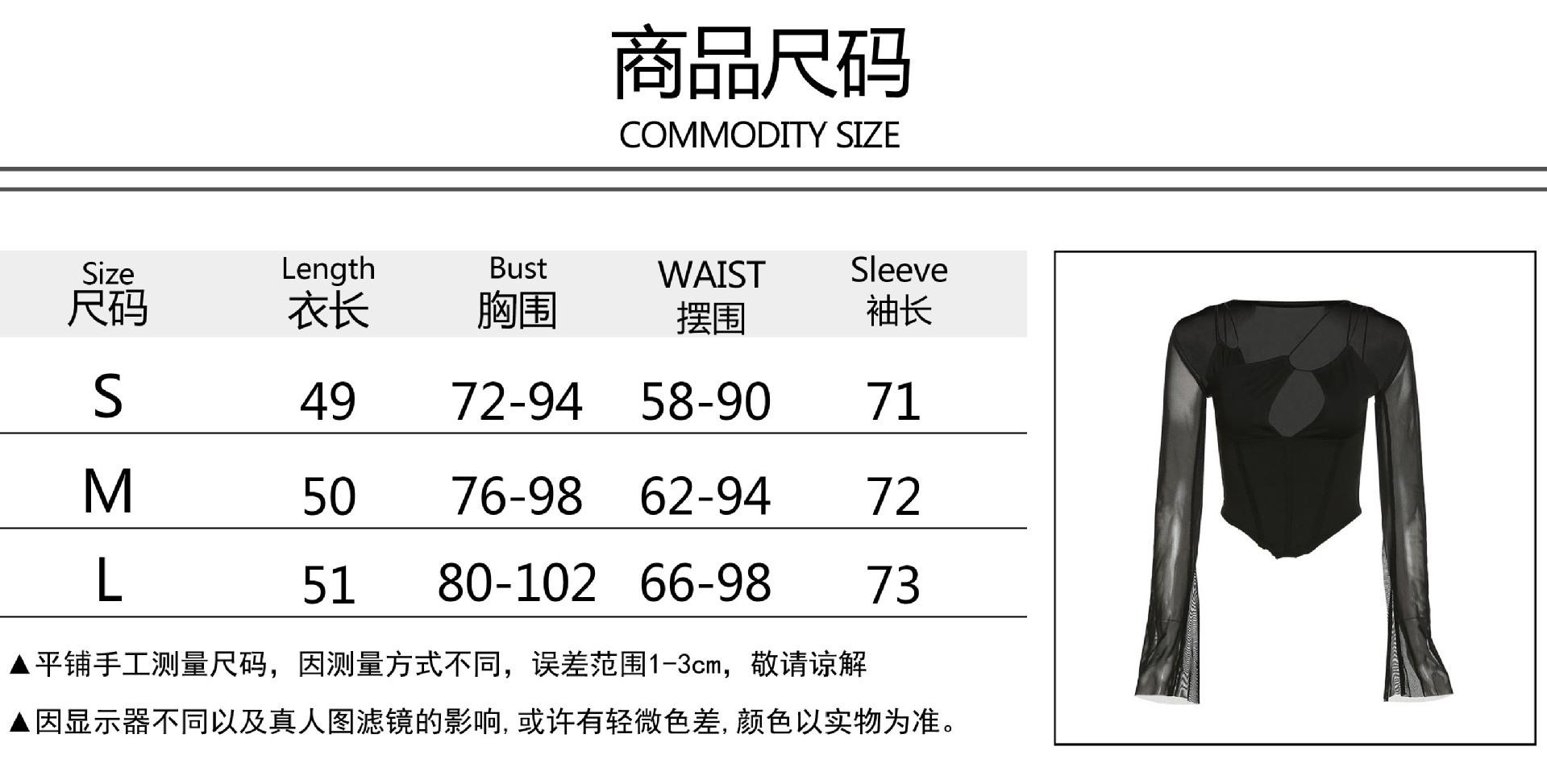Europa y Estados Unidos nuevo top de manga larga ajustado sexy para chica hot con costuras de malla hueco irregular