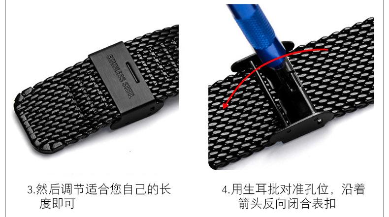 Pulido para ser suave y redondo, pulido espejo para una apariencia hermosa, correa de articulación suave y moderna, cada sección se mueve suavemente y se adapta a la piel.