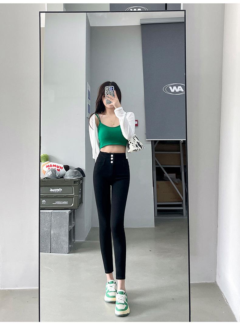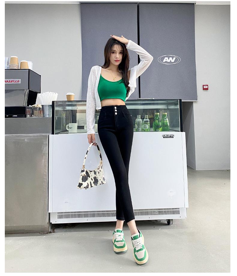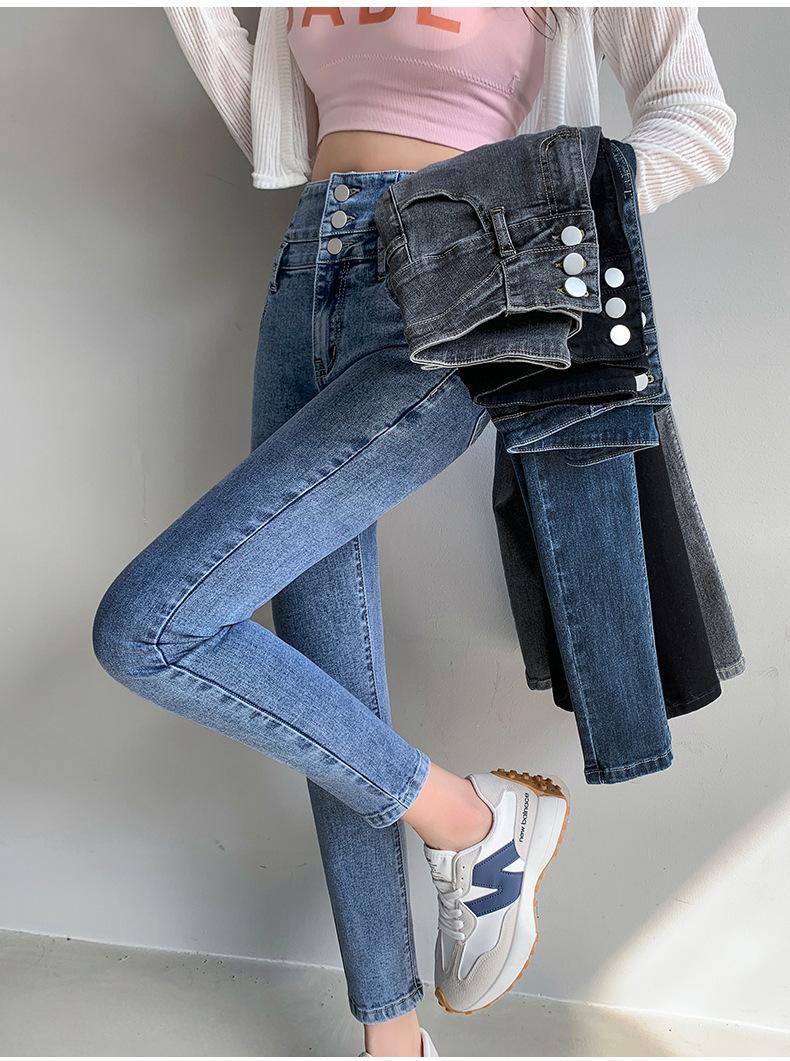 Pantalones vaqueros ajustados negros ajustados de cintura alta para mujer, primavera y otoño 2023