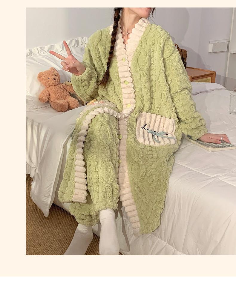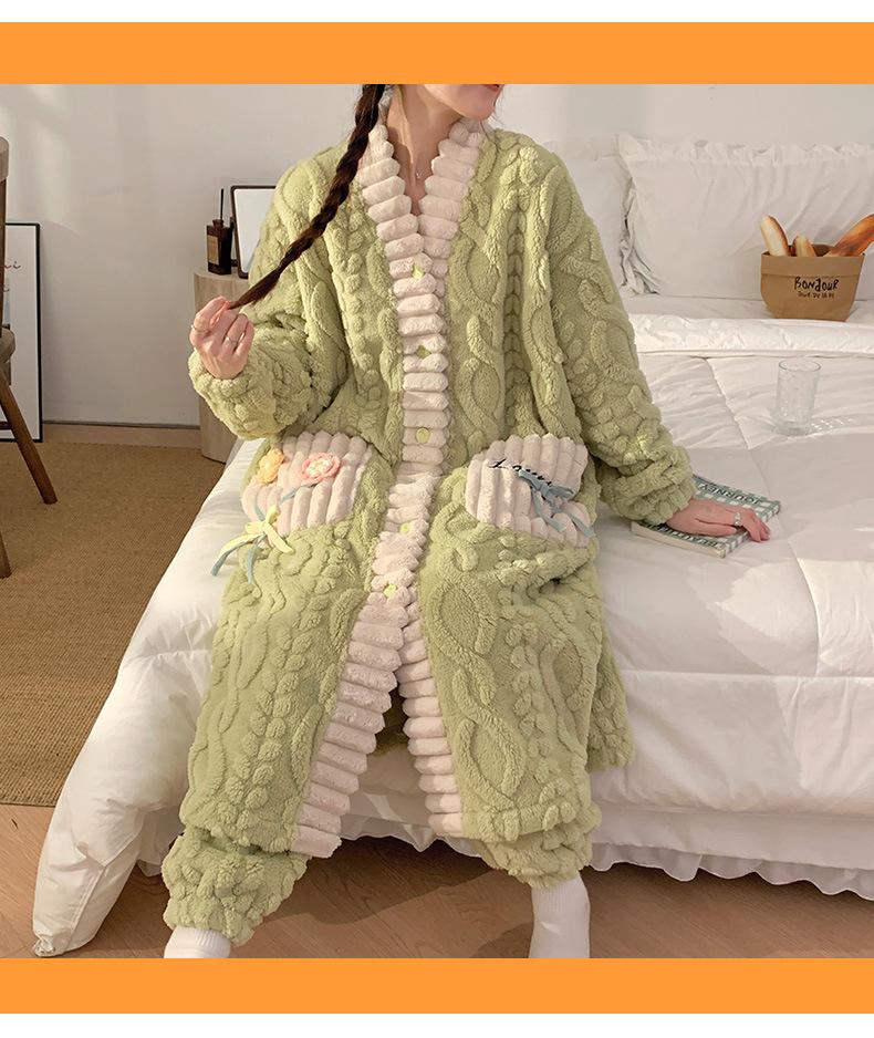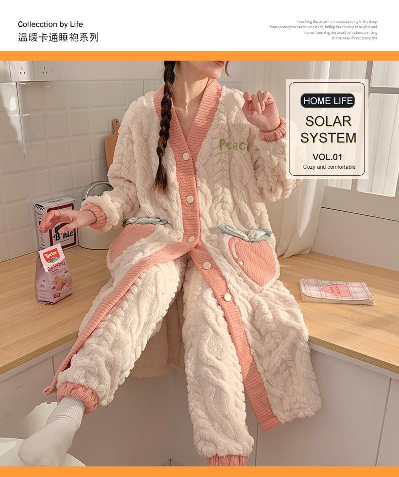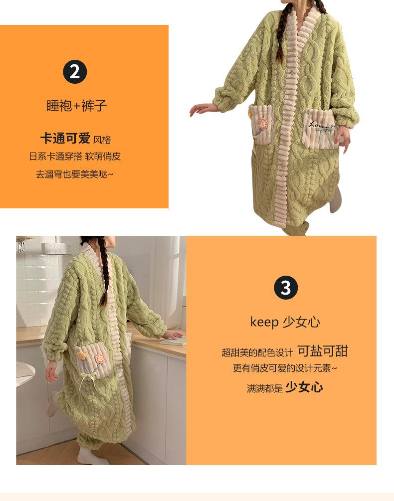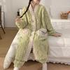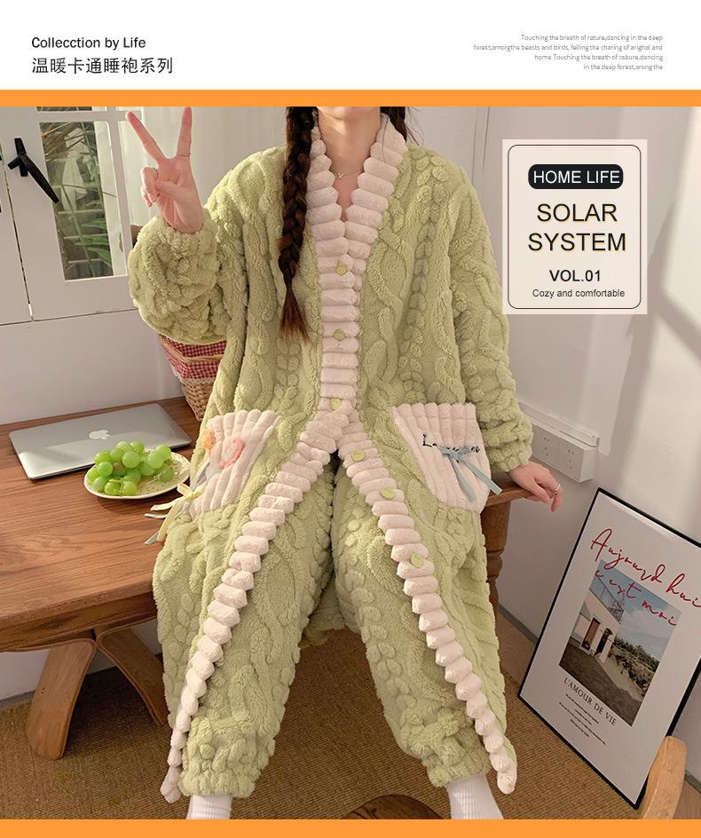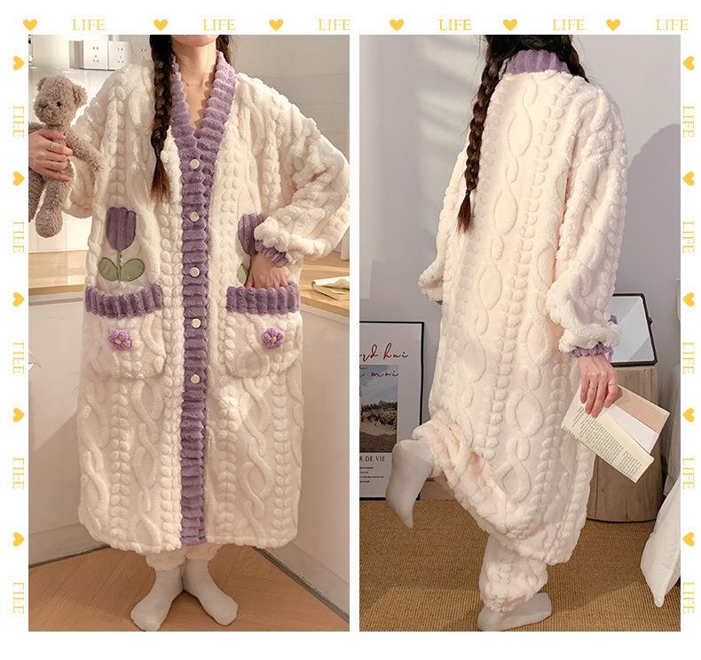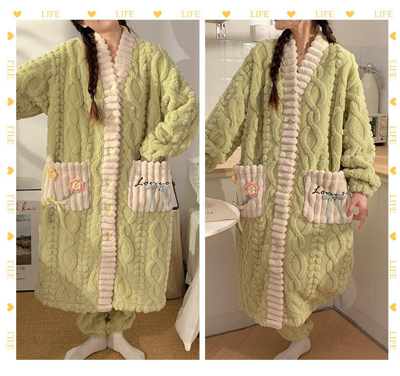 Pijama nuevo de otoño e invierno para mujer, largo, de forro polar coral, grueso y cálido, bata de baño informal de talla grande, se puede usar al aire libre