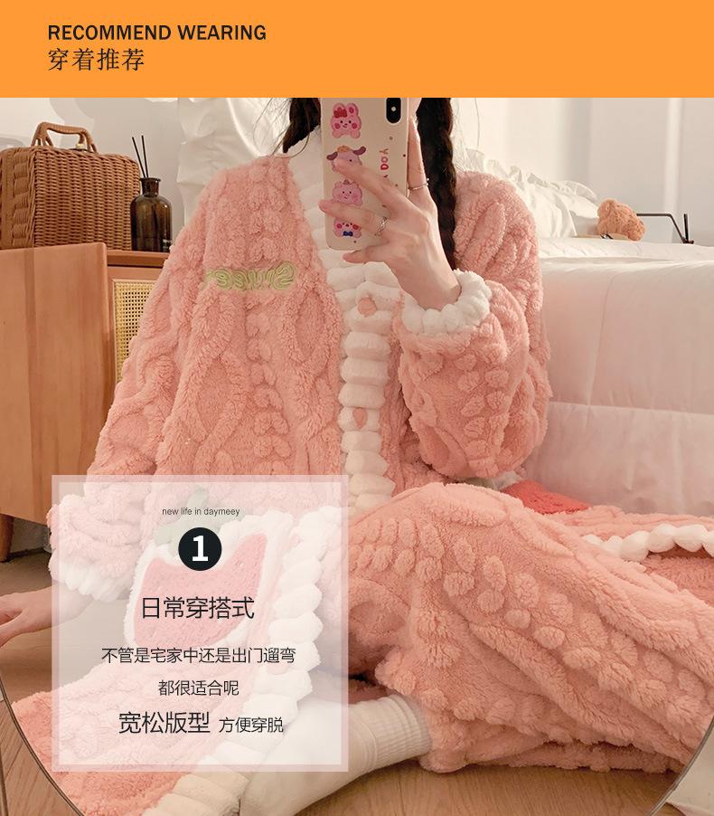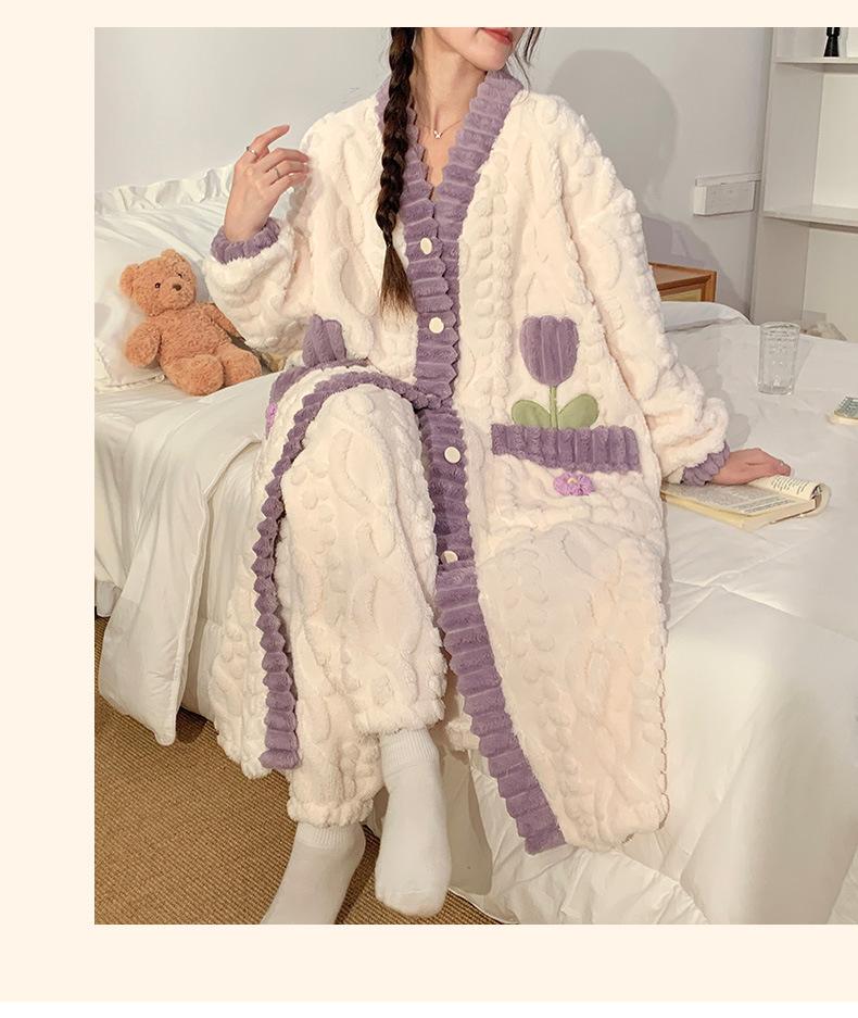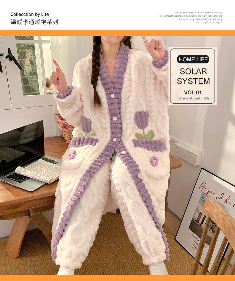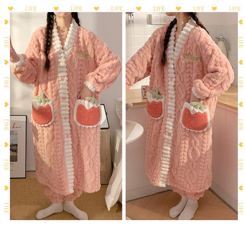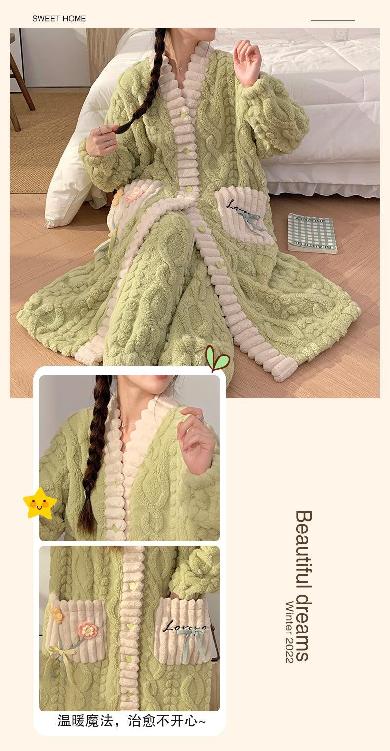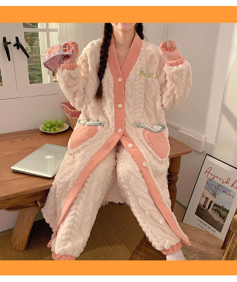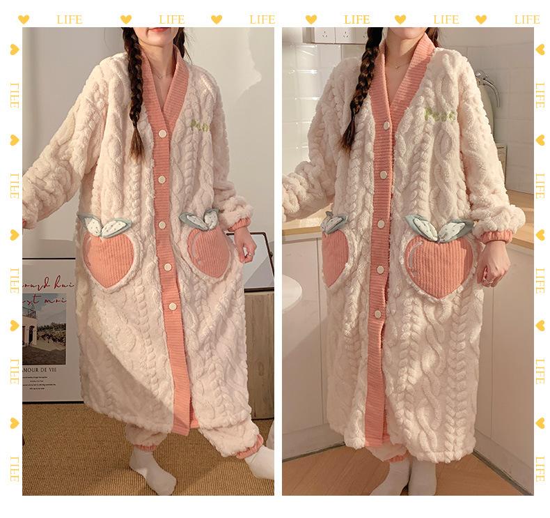 Pijama nuevo de otoño e invierno para mujer, largo, de forro polar coral, grueso y cálido, bata de baño informal de talla grande, se puede usar al aire libre