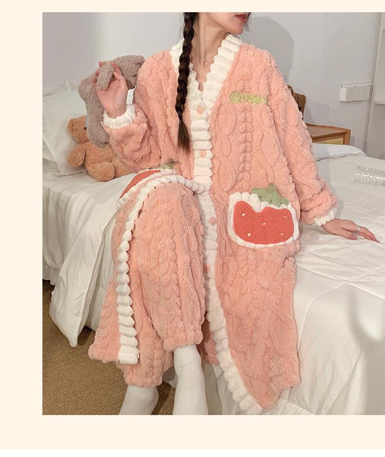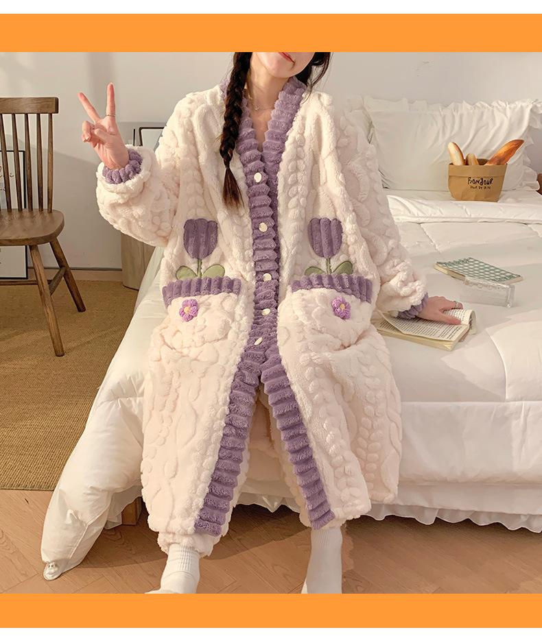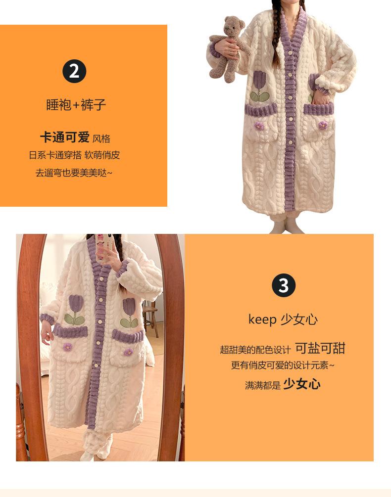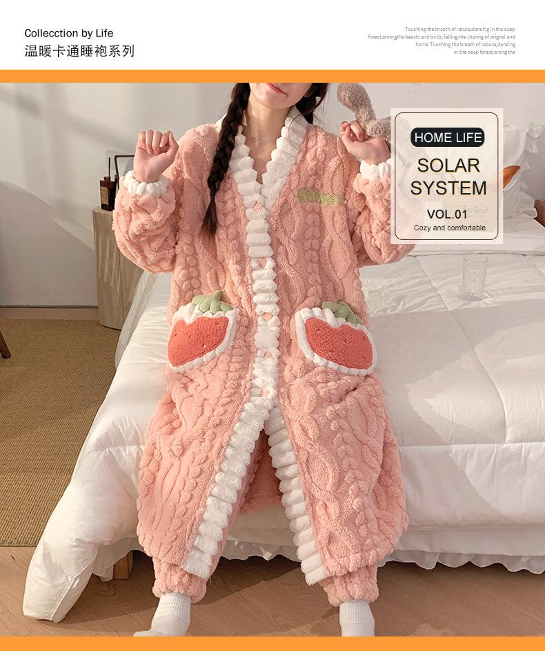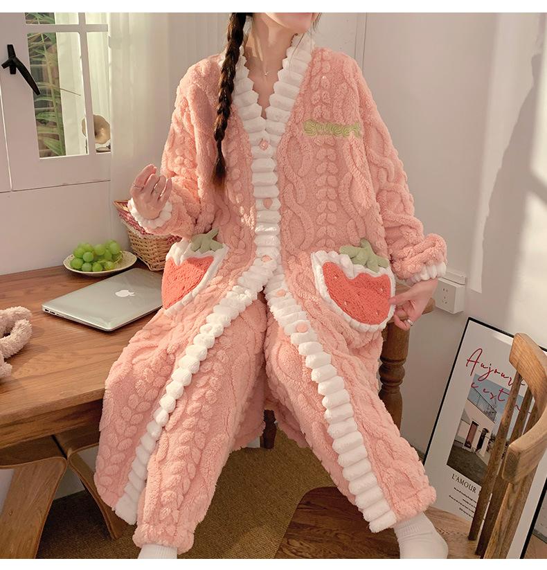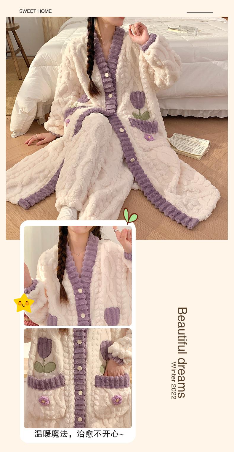 Pijama nuevo de otoño e invierno para mujer, largo, de forro polar coral, grueso y cálido, bata de baño informal de talla grande, se puede usar al aire libre