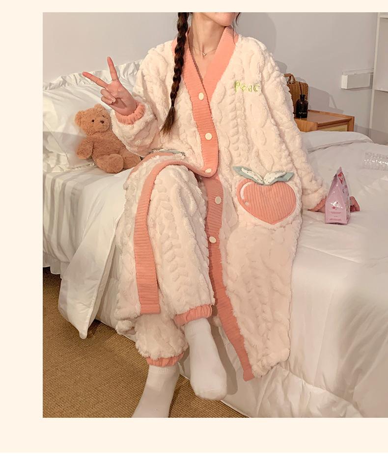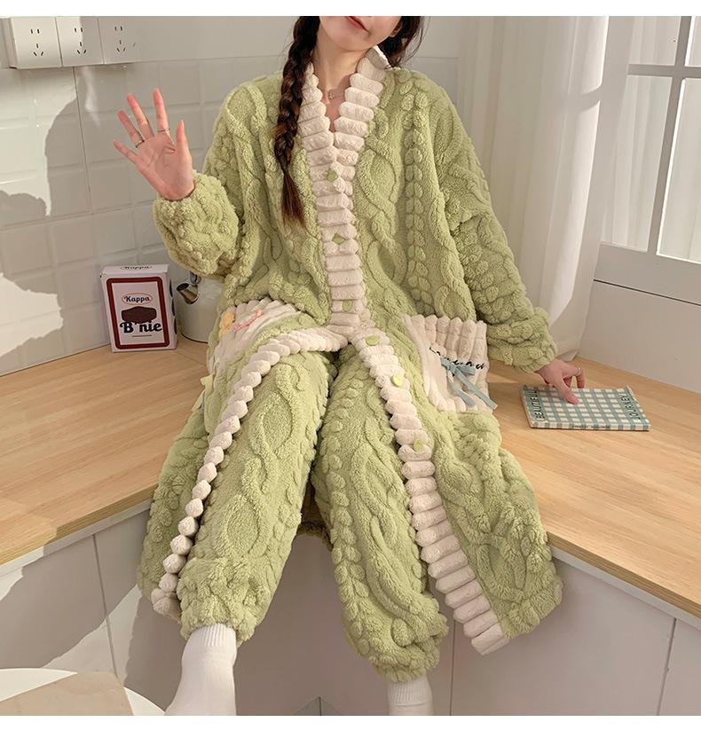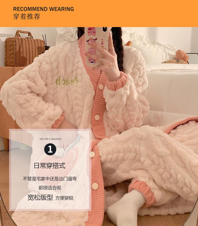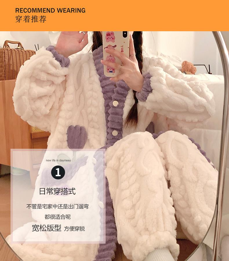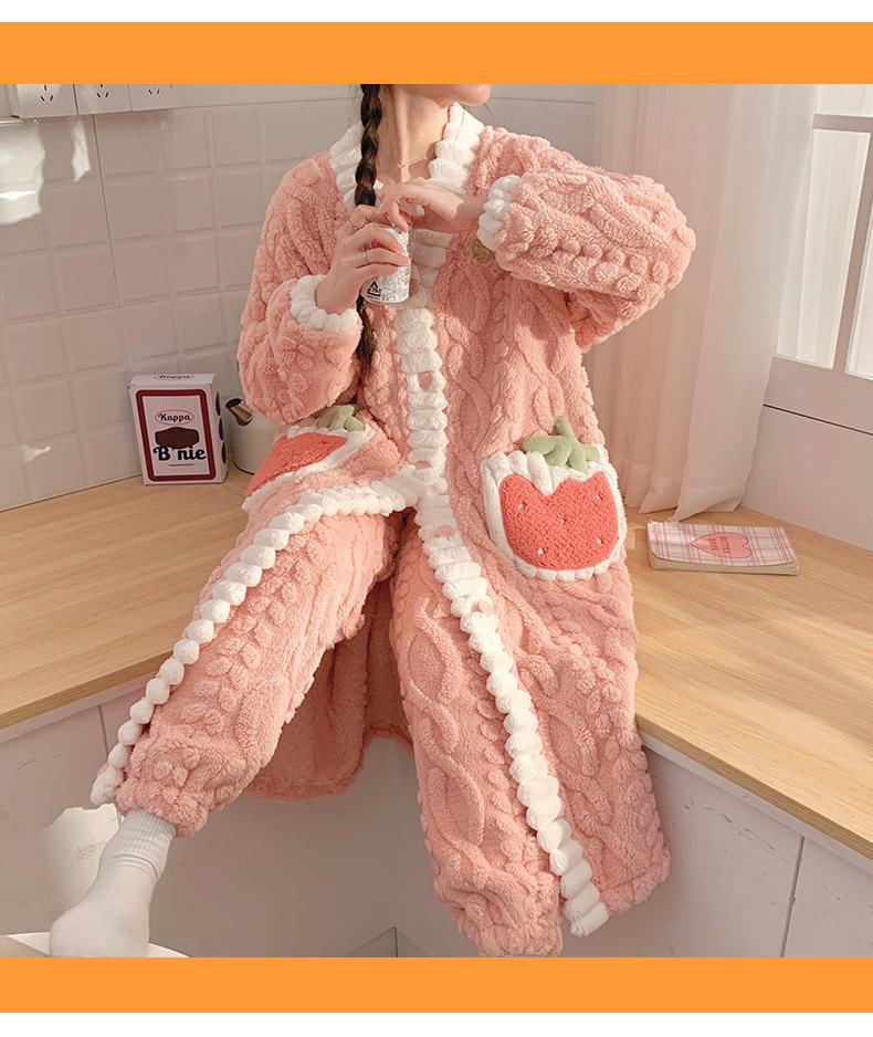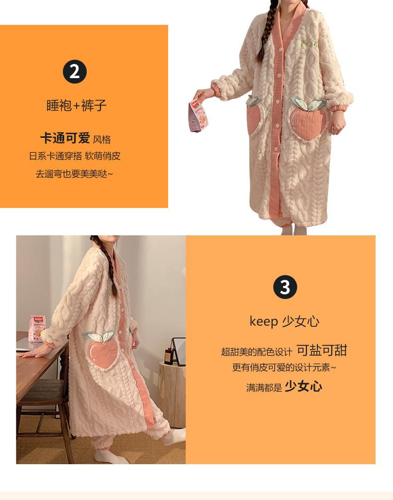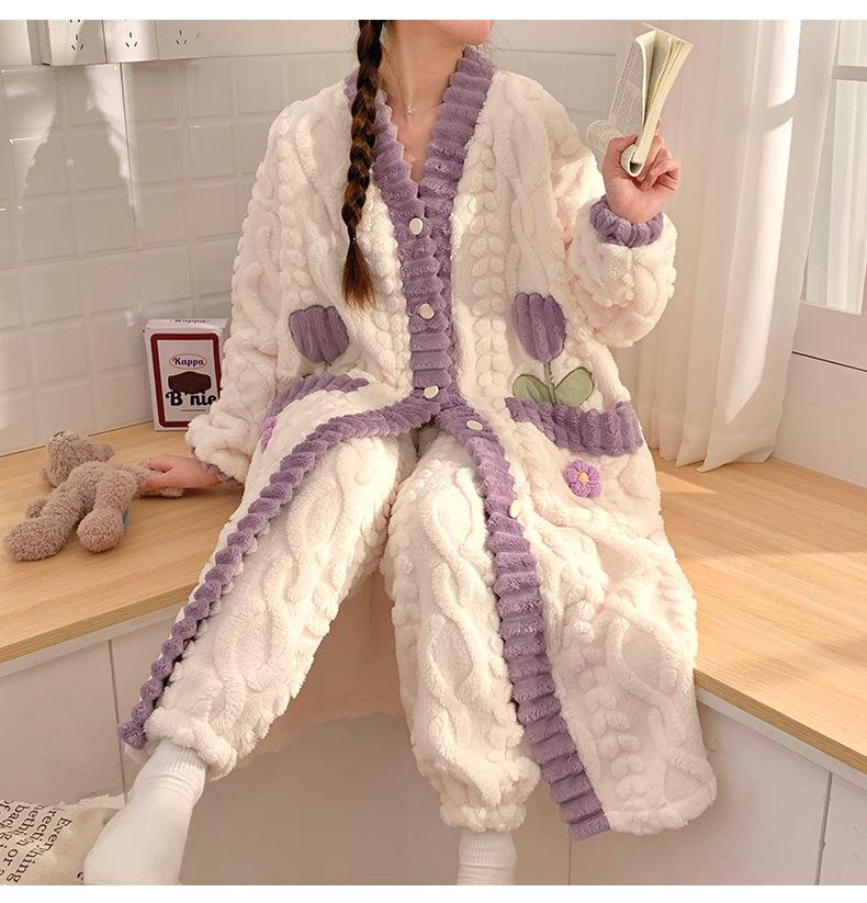 Pijama nuevo de otoño e invierno para mujer, largo, de forro polar coral, grueso y cálido, bata de baño informal de talla grande, se puede usar al aire libre