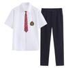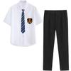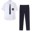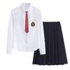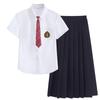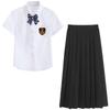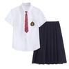 Girls short sleeve shirt + navy blue skirt + tie + badge, Girls short sleeve shirt + navy blue dress + tie + b...