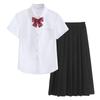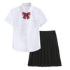 Girls short-sleeved shirt + bow tie, Girls long sleeve shirt + bow tie, Girls short sleeve shirt + black skirt...