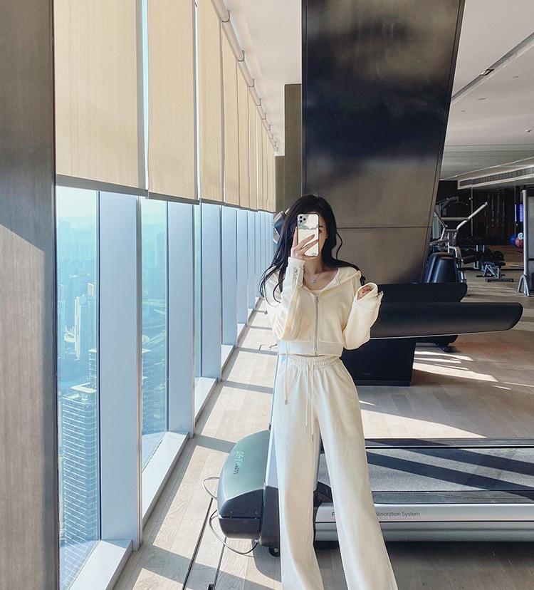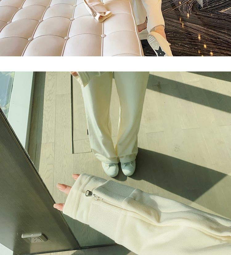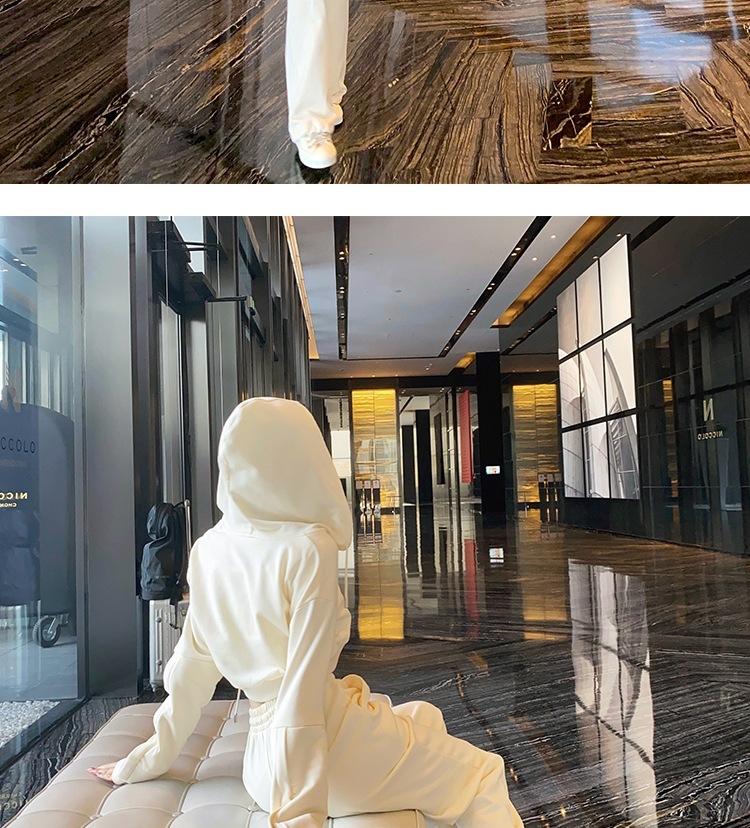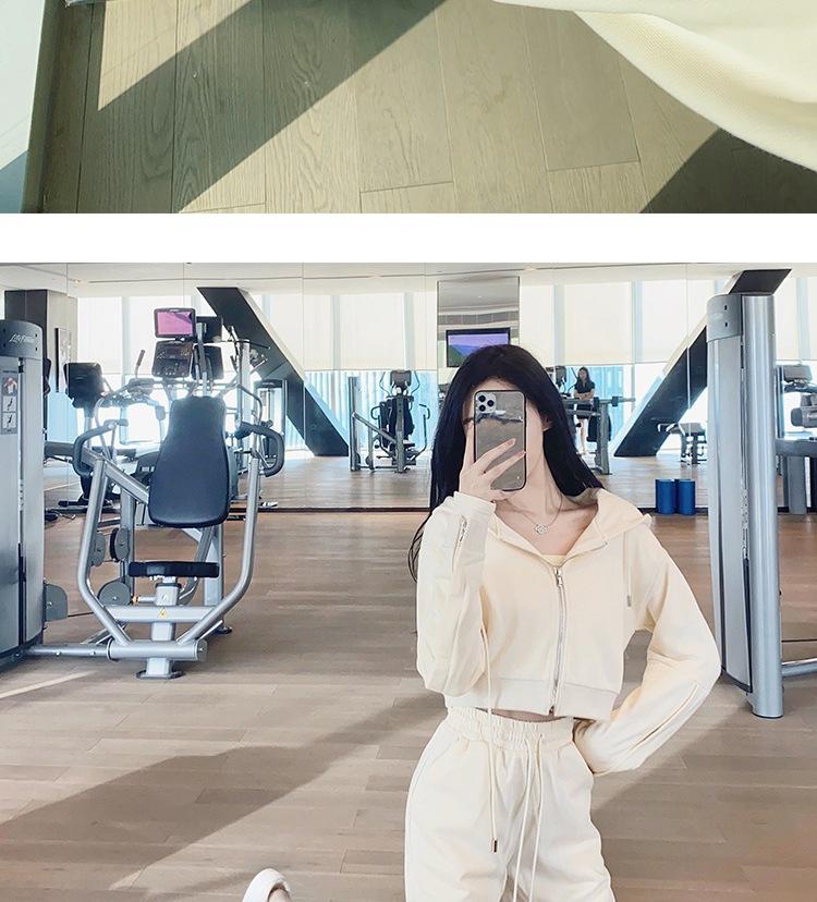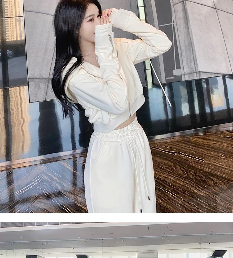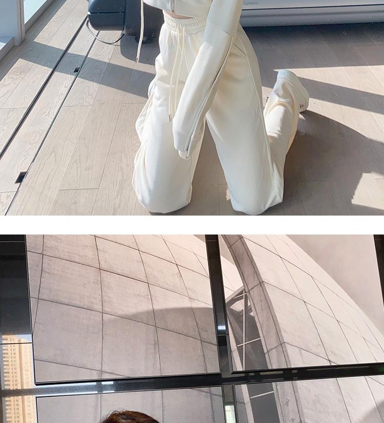 Pantalones anchos de pierna de moda de primavera y otoño de 2024, sudadera corta con capucha de dos piezas, informal, de color sólido, traje deportivo, moda femenina