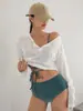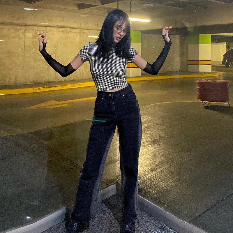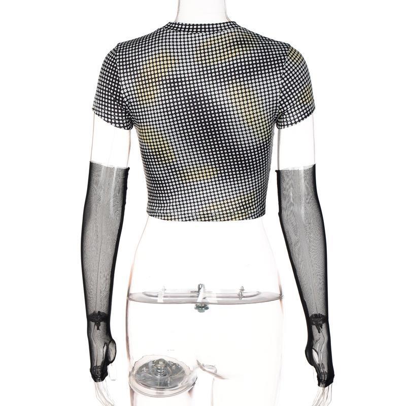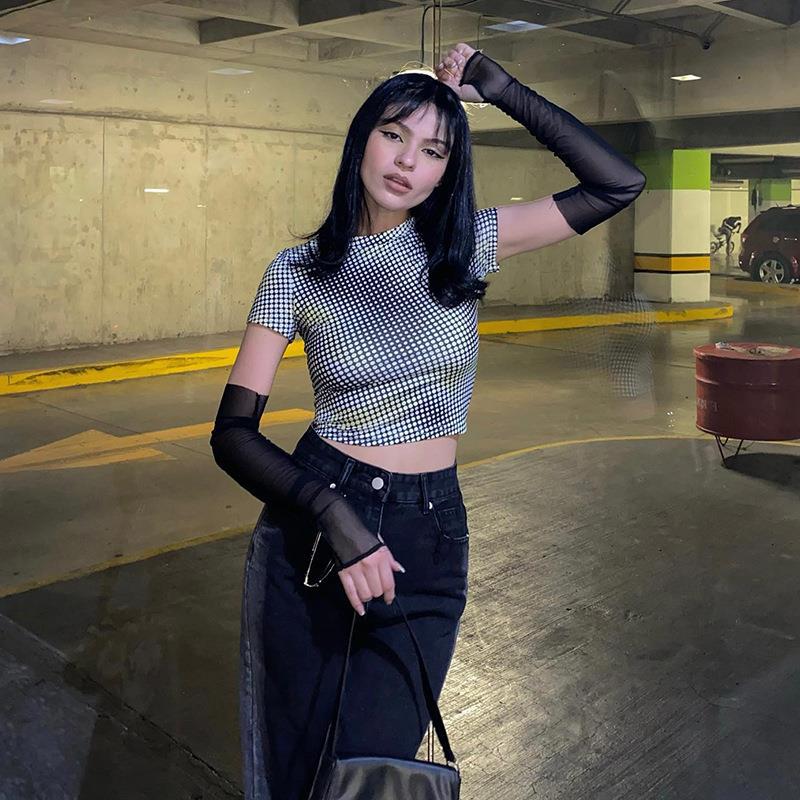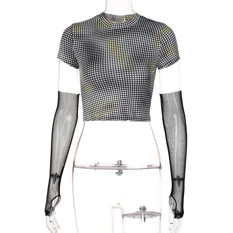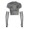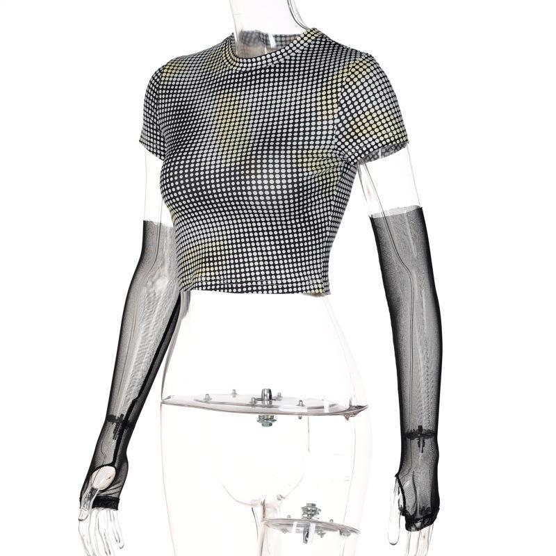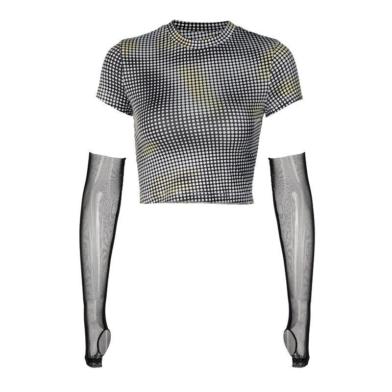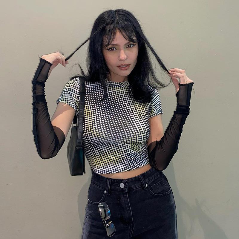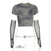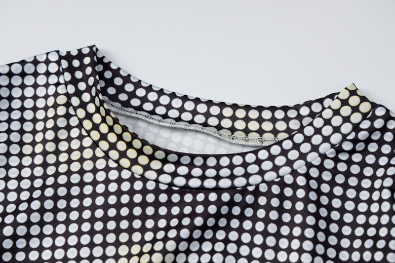 Ropa de mujer estilo ins europeo y americano 2022 nueva estampado de lunares + manga superpuesta de malla moda casual slim adelgazante playera para mujer
