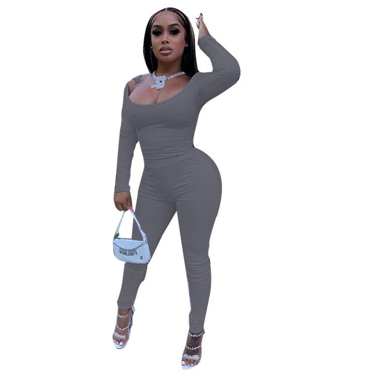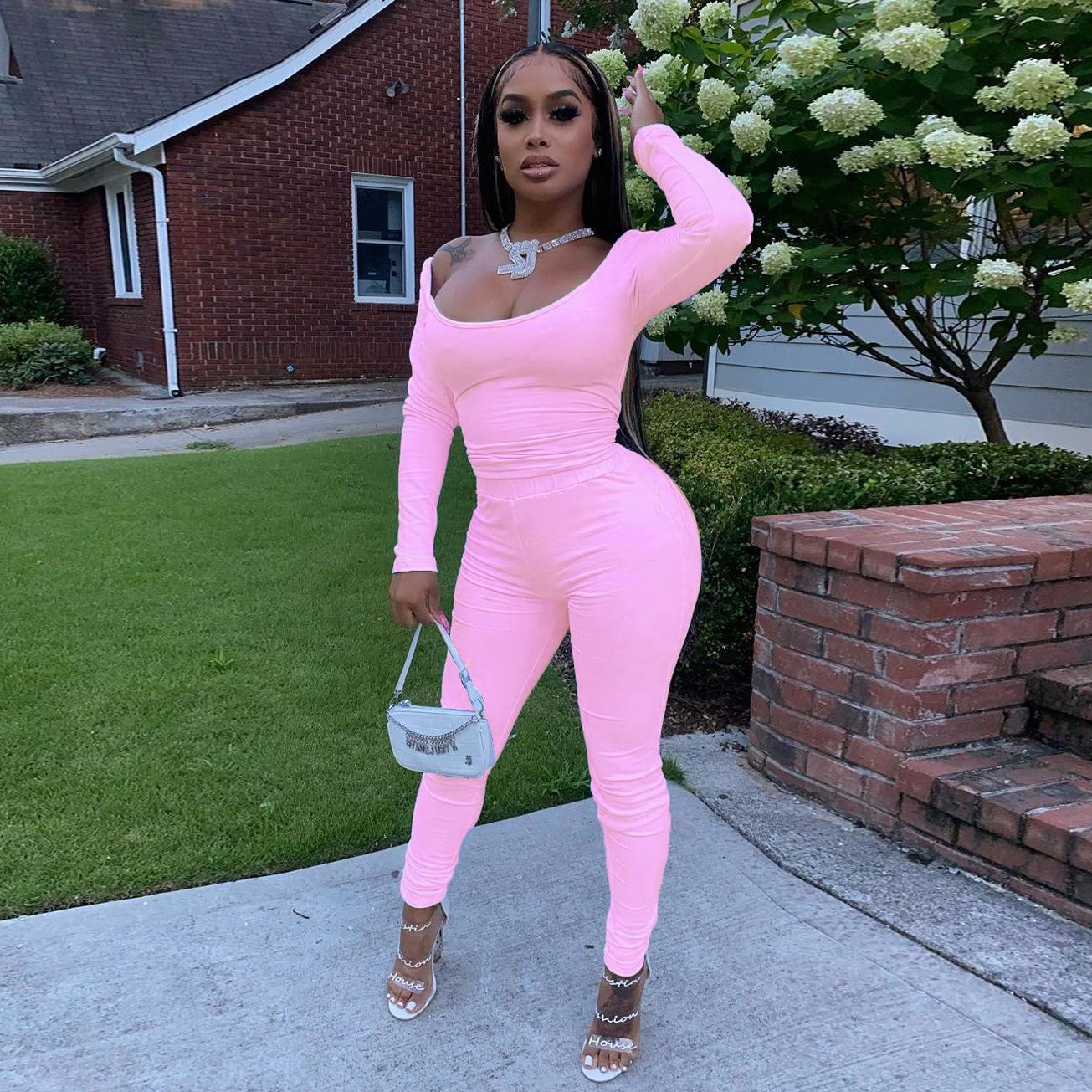 Traje deportivo informal de color sólido de moda transfronteriza para mujer de Amazon, Europa y América de verano de 2020