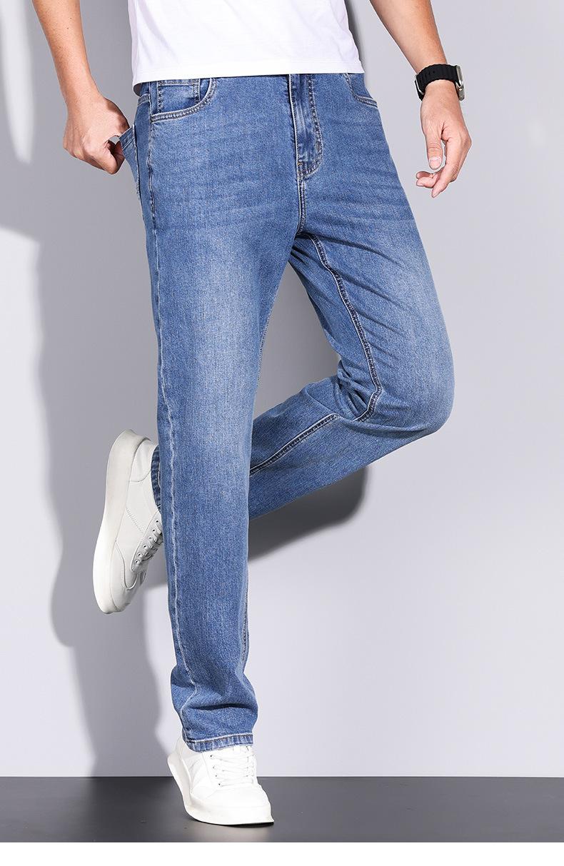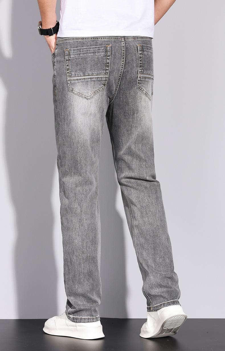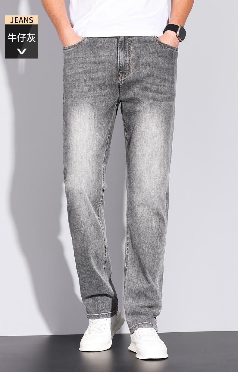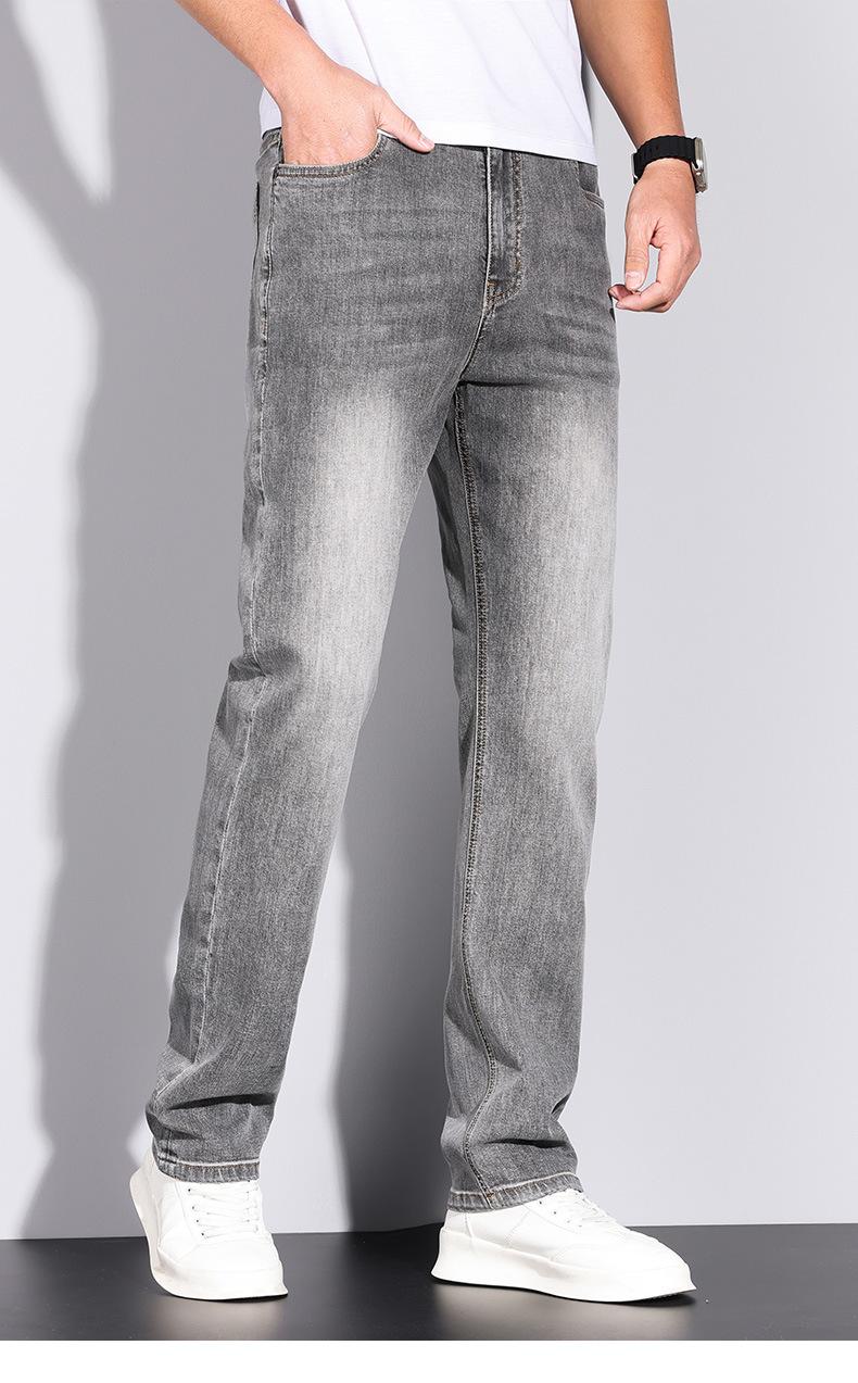 Pantalones vaqueros finos de primavera y verano para hombre, rectos, sueltos, de alta gama, elásticos, de cintura media, color gris ahumado, pantalones largos casuales para hombre