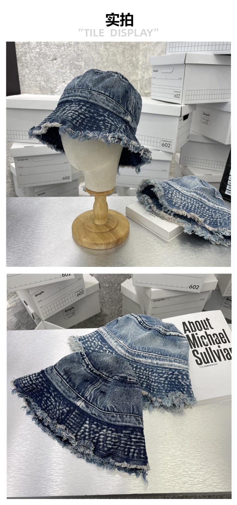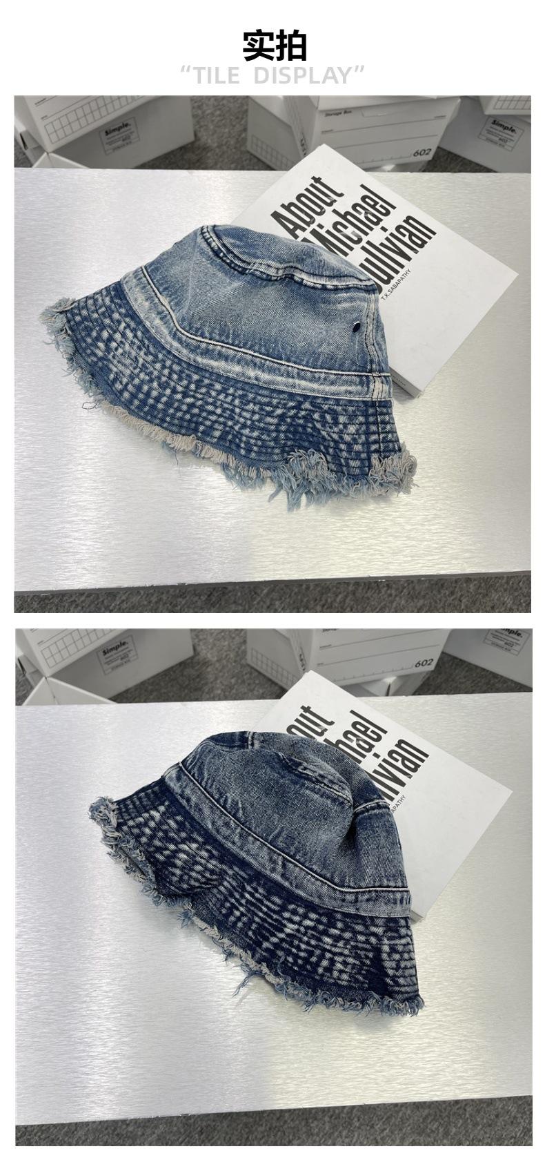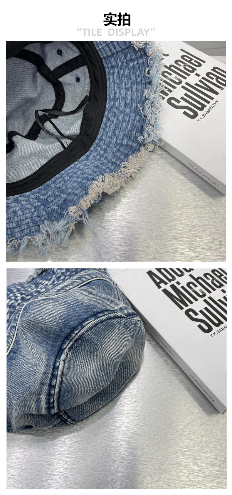 Sombrero de pescador de mezclilla desgastado lavado retro de estilo japonés para mujer, sombrero de lavabo pequeño a prueba de sol con aspecto de cara que combina con todo de moda de verano para hombre