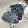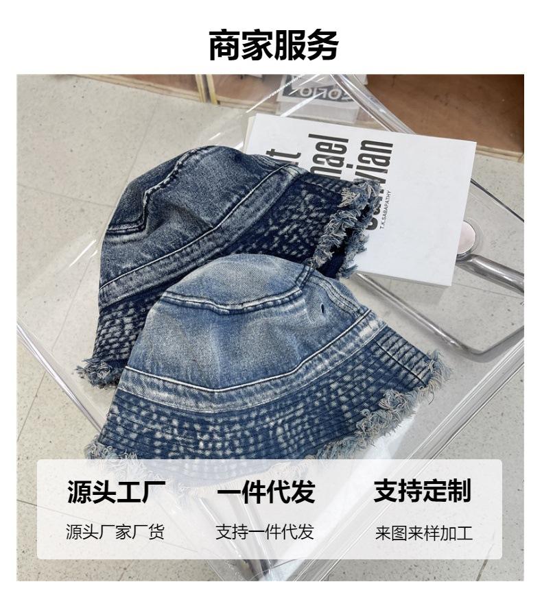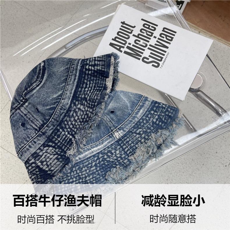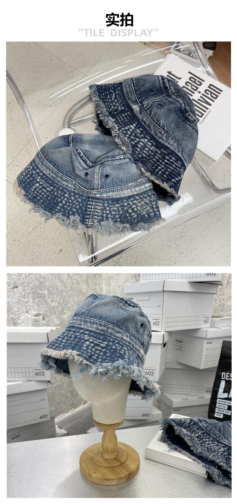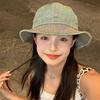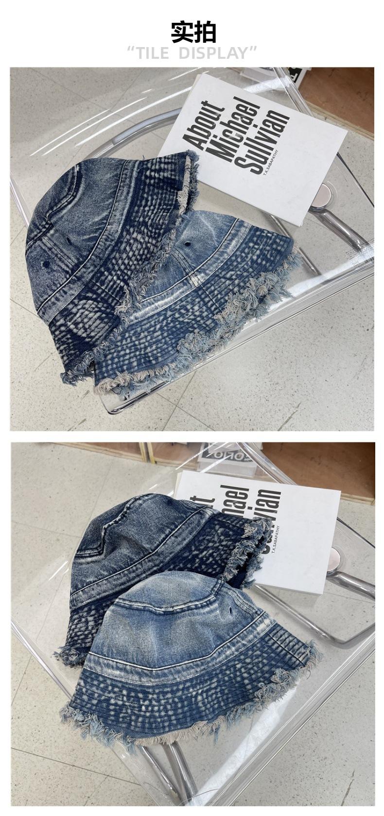Sombrero de pescador de mezclilla desgastado lavado retro de estilo japonés para mujer, sombrero de lavabo pequeño a prueba de sol con aspecto de cara que combina con todo de moda de verano para hombre
