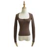 Playera Básica de Cuello Redondo y Manga Larga Ajustada para Mujer, Moda Elegante S21068