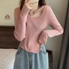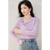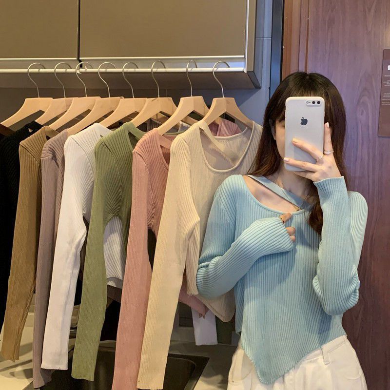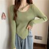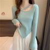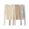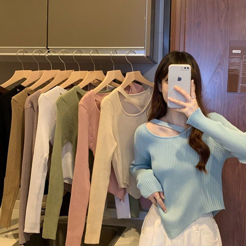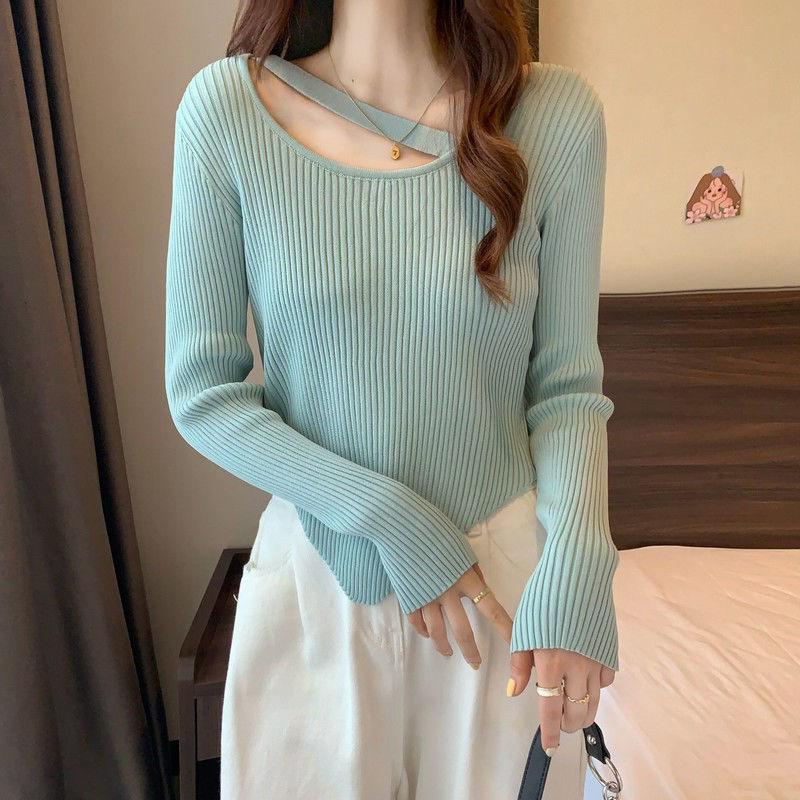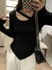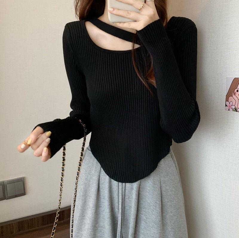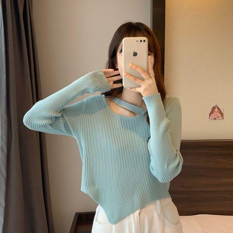 Camiseta Base Tejida Irregular Francesa Puro Deseo para Mujer Primavera y Otoño 2023 Diseño Interior Chic Top Corto Clavícula
