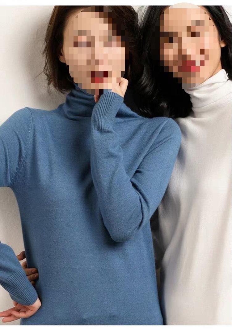 Suéter de cachemira de cuello alto para otoño e invierno, suéter de mujer con cuello de pila, suéter de punto a juego, suéter básico ajustado, negro, talla única, blanco