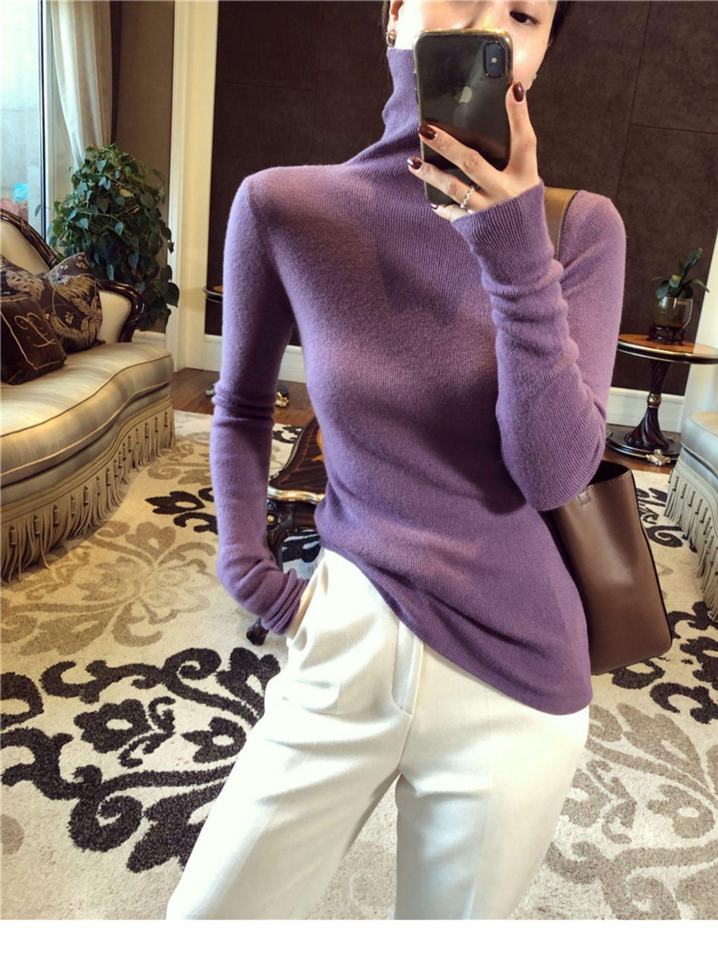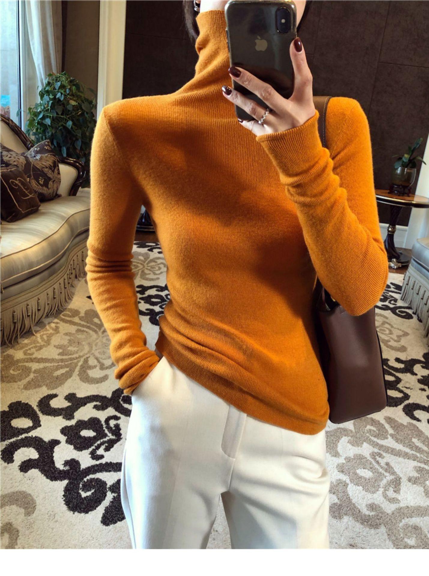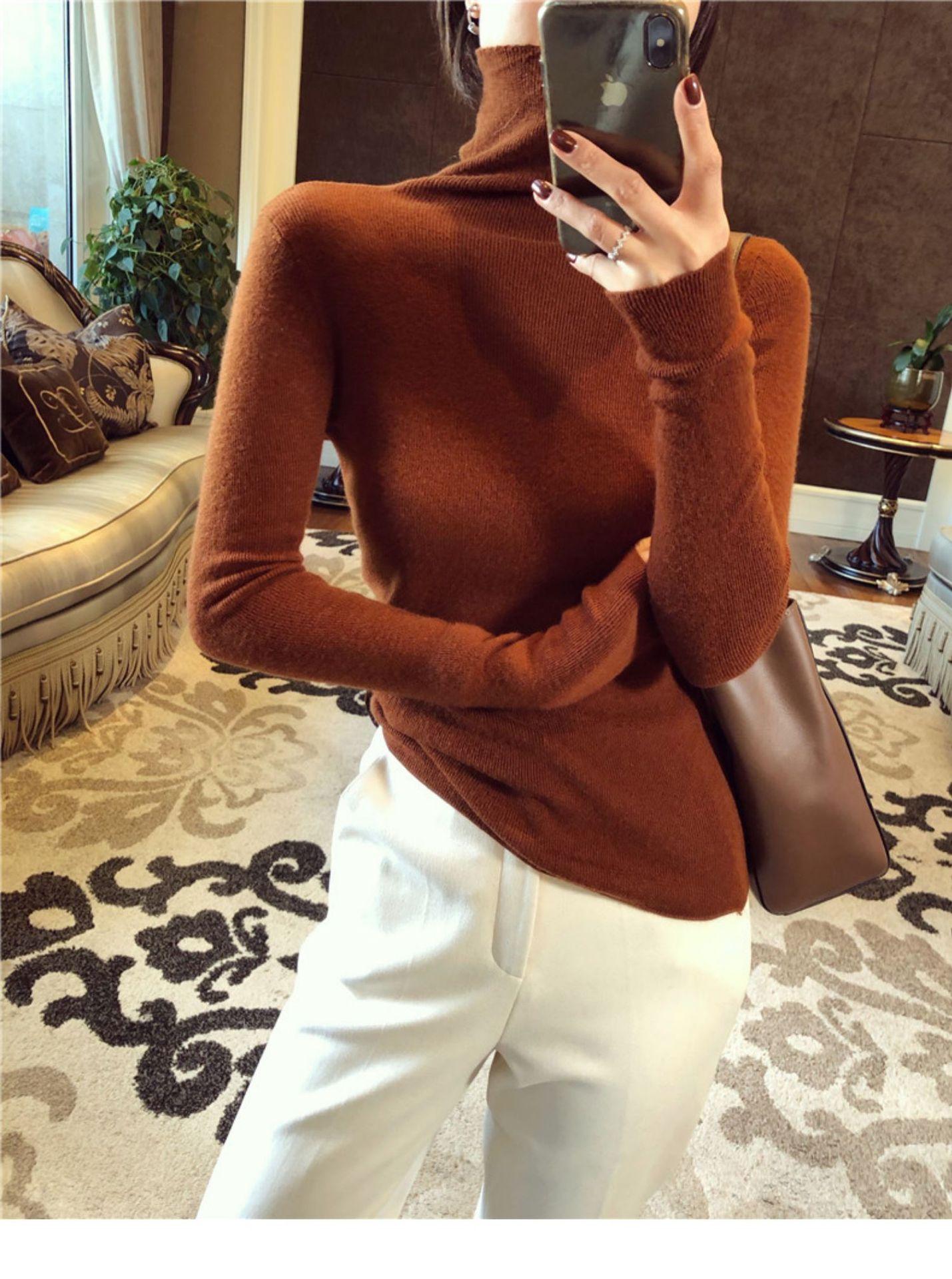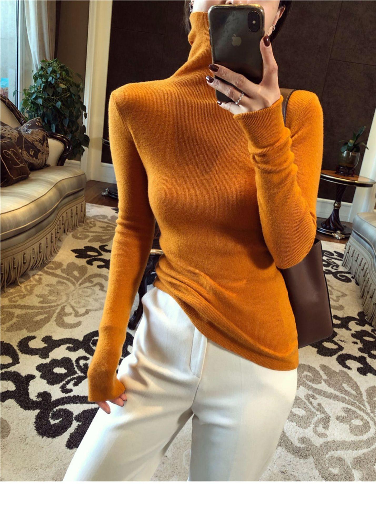 Suéter de primavera y otoño Design Sense Niche 2024, nuevo suéter de punto interior con cuello alto para otoño e invierno para mujer.