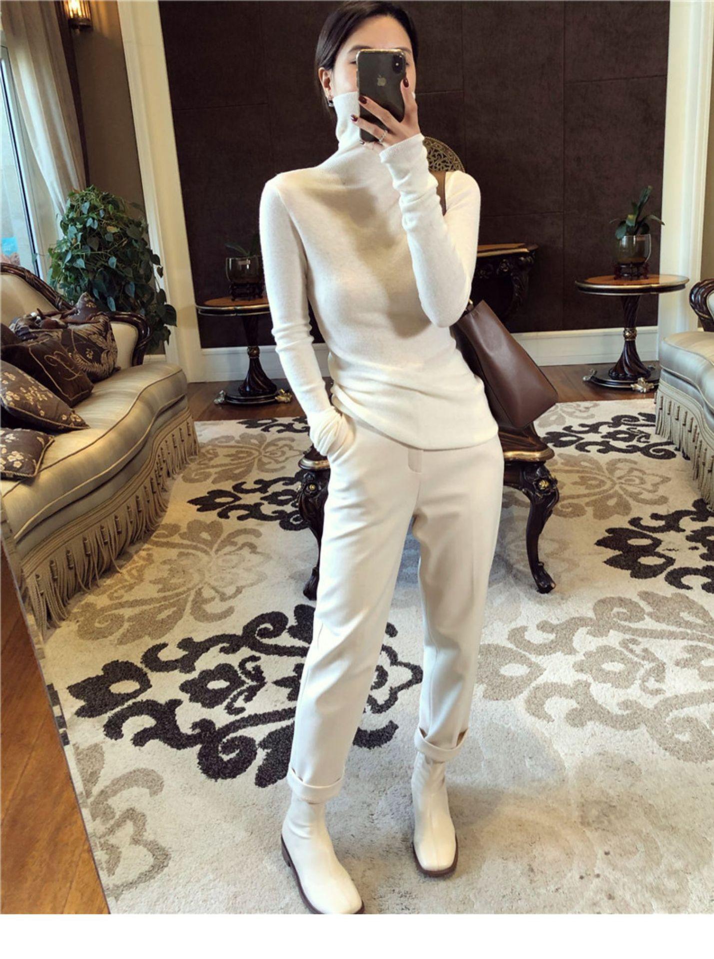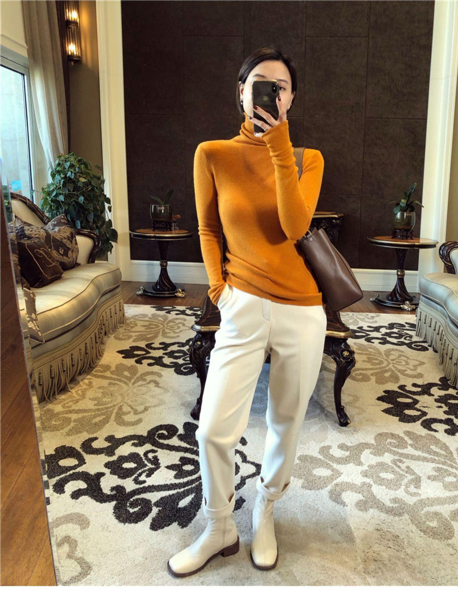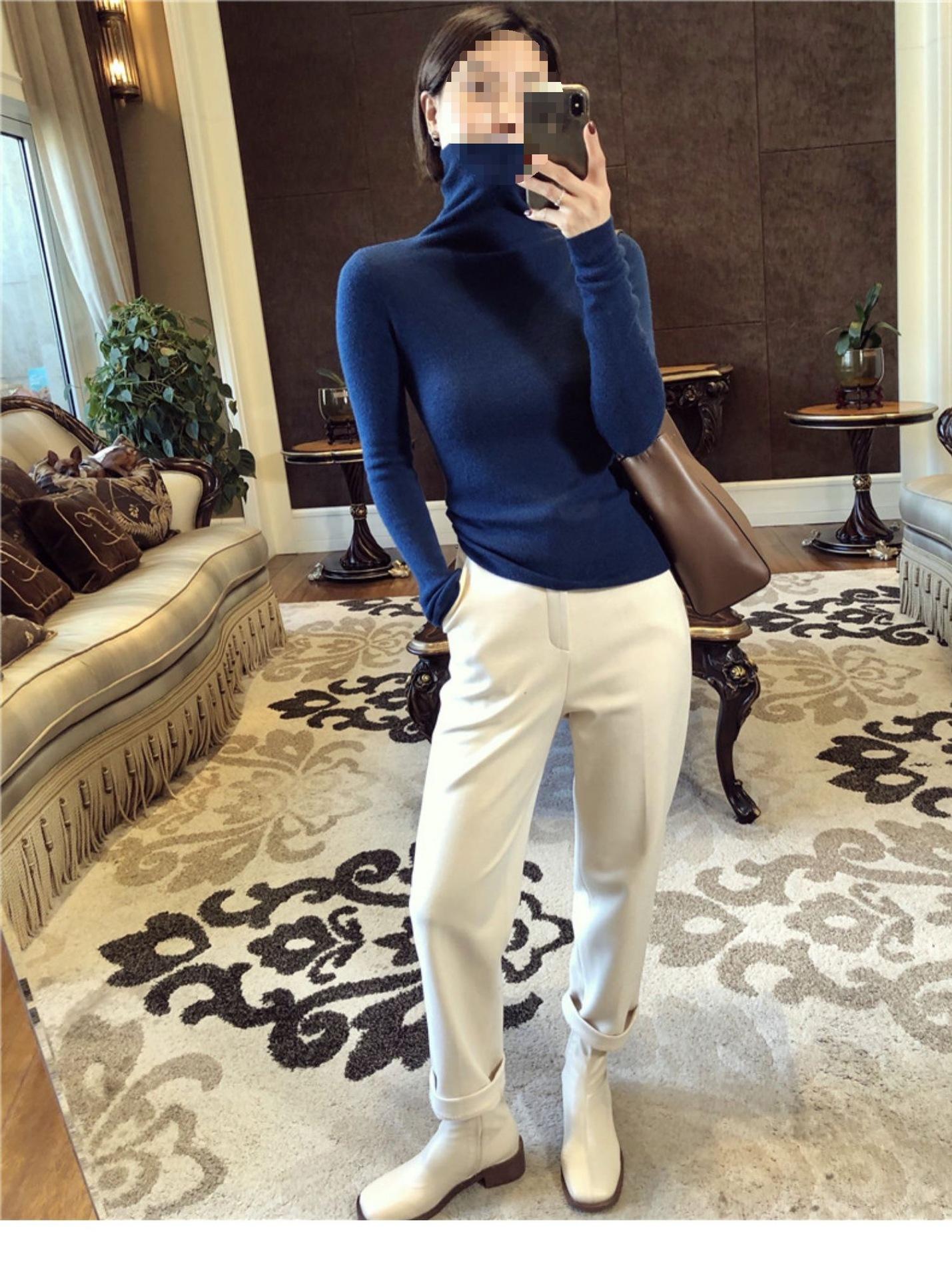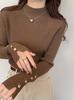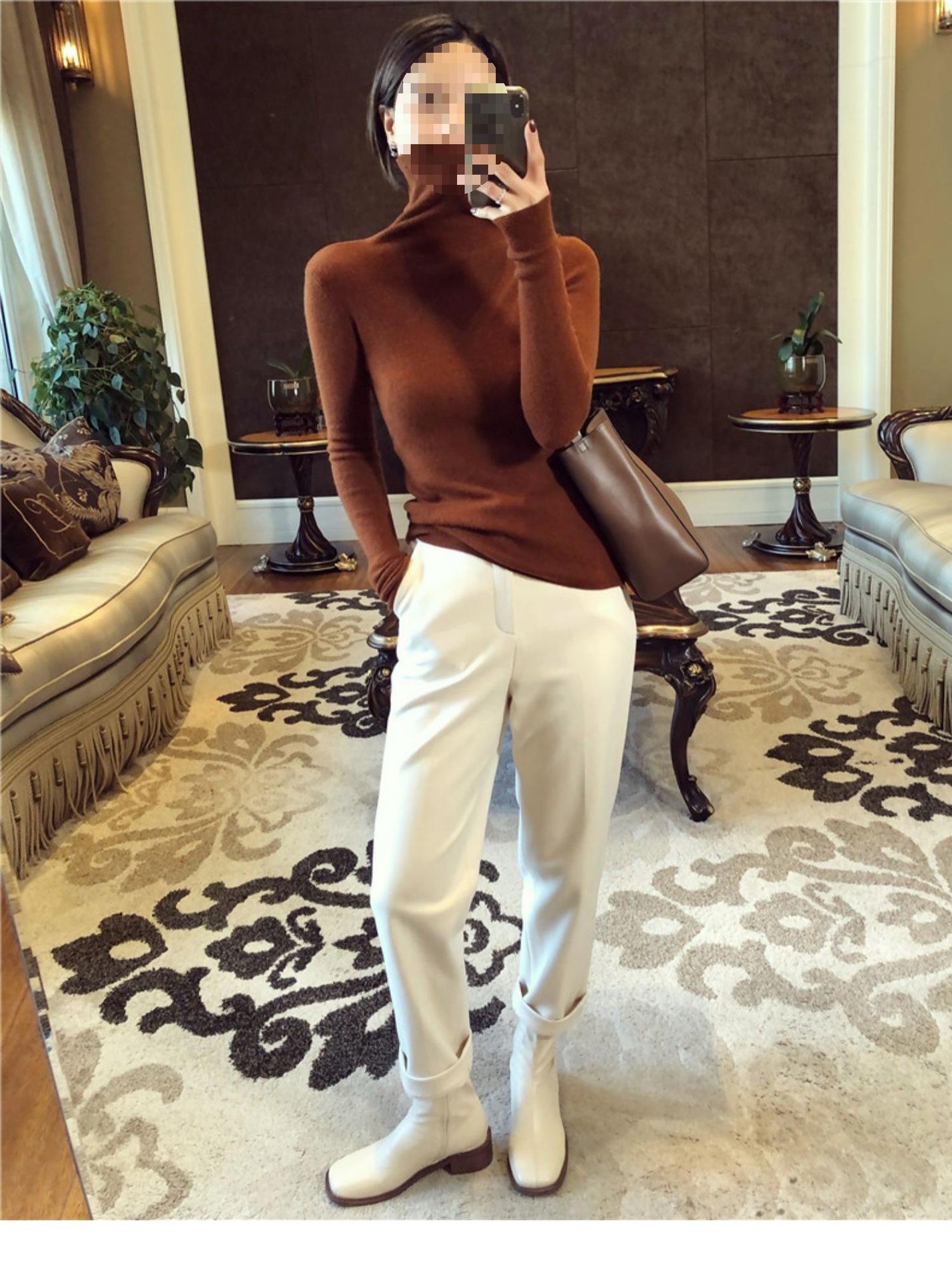 Suéter de primavera y otoño Design Sense Niche 2024, nuevo suéter de punto interior con cuello alto para otoño e invierno para mujer.