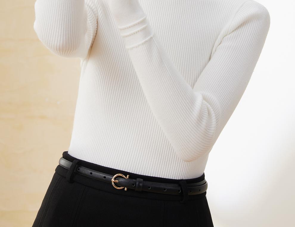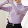 Elegante Punto de Manga Larga para Mujer en Otoño e Invierno, Cuello Medio Tortuga Moderno y Versátil, Punto de Punto Ajustado, Top Base de Moda