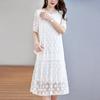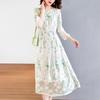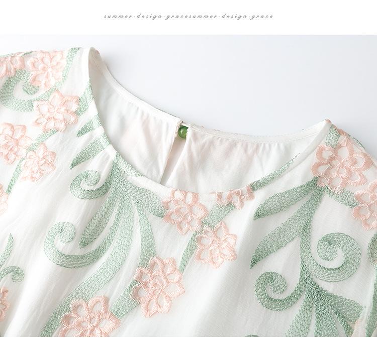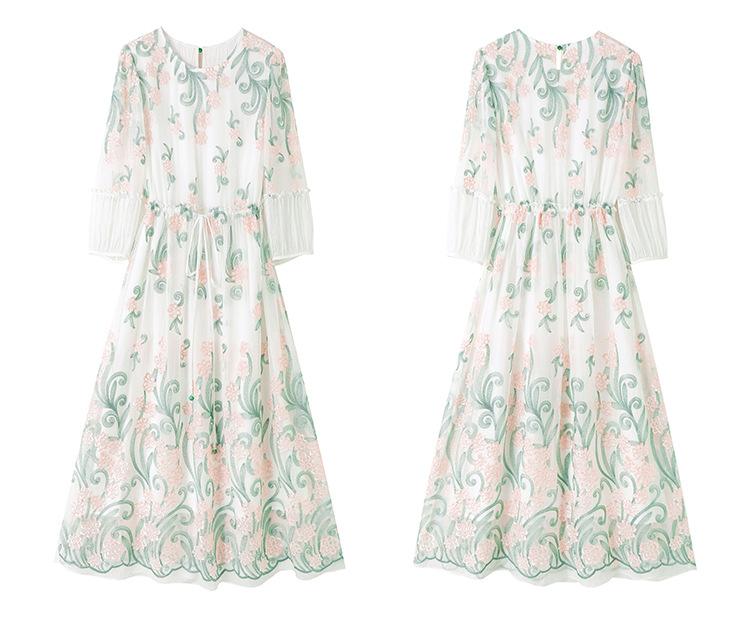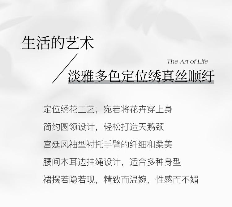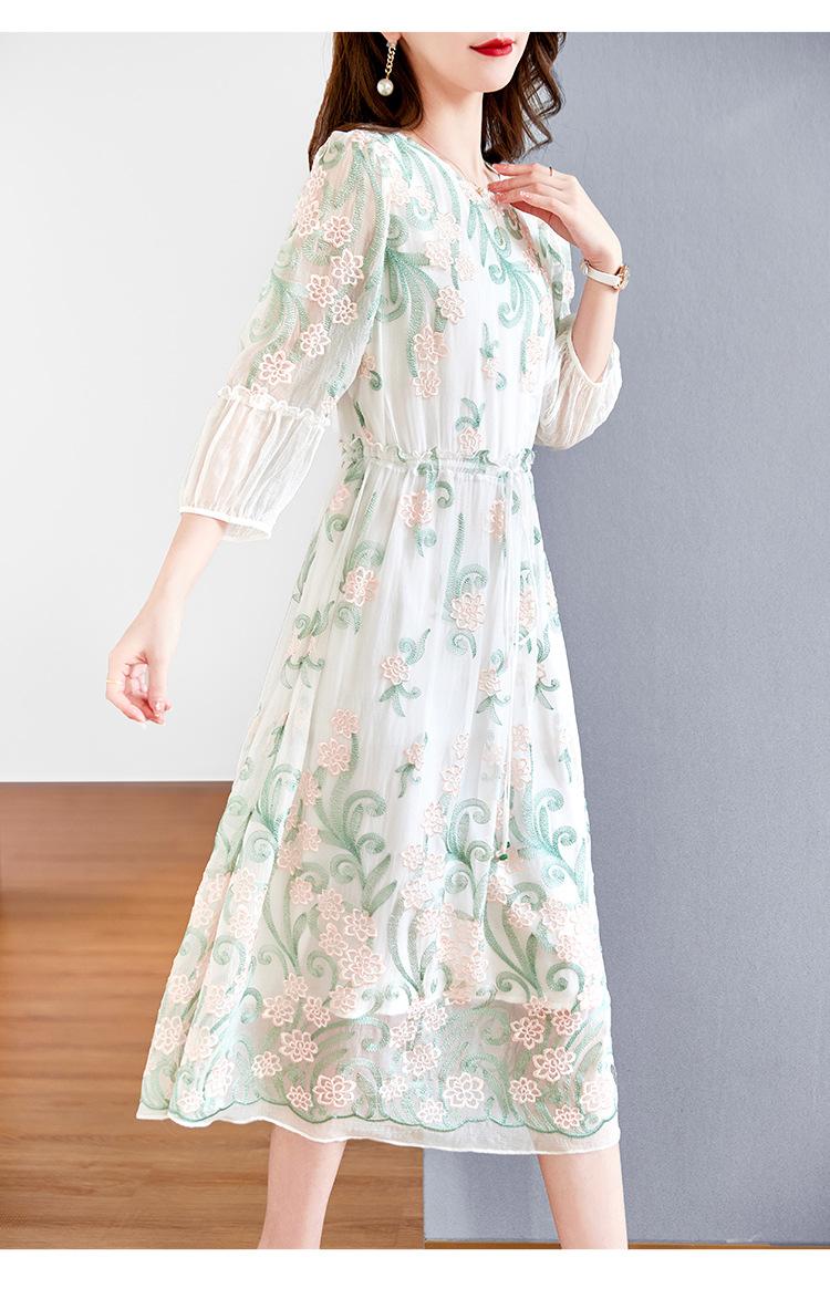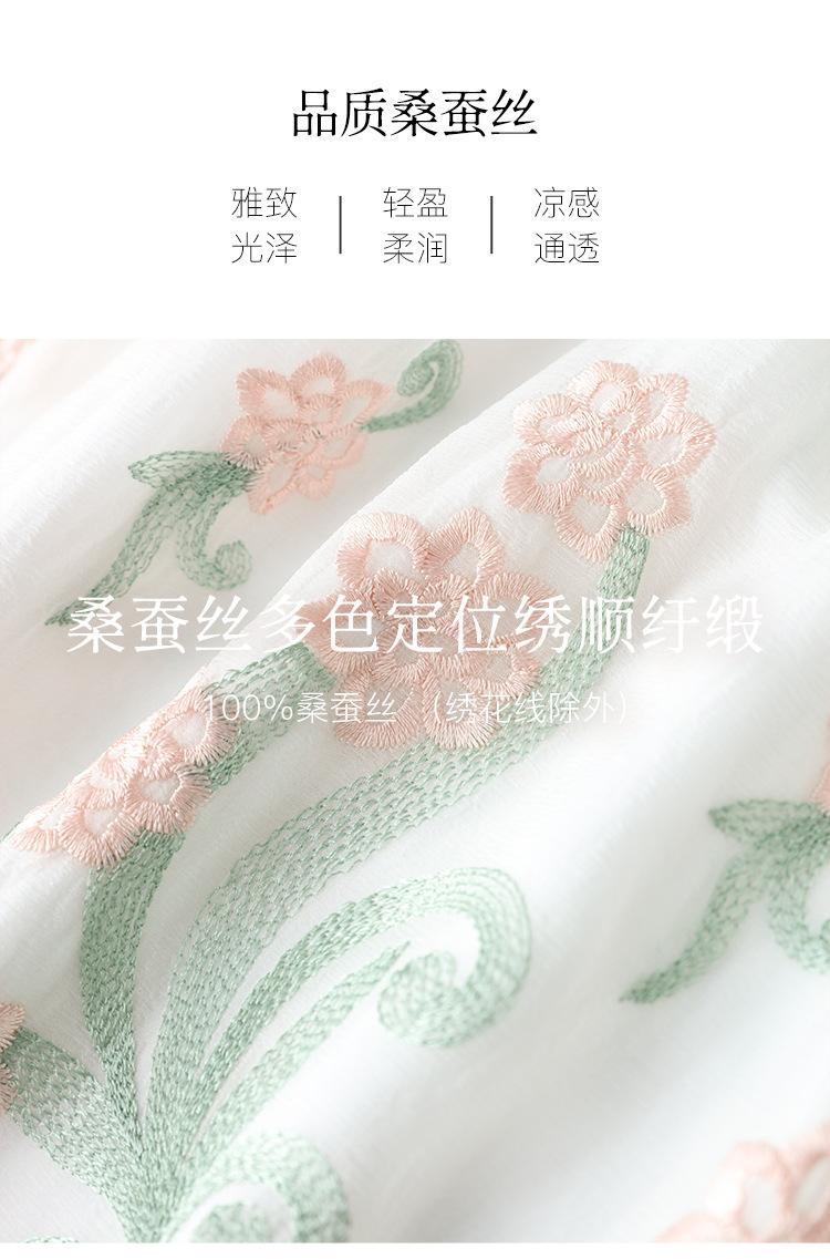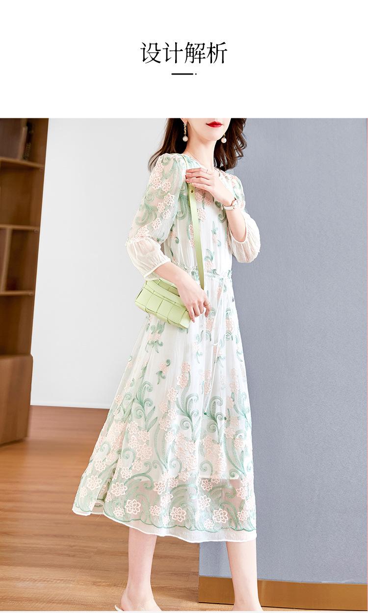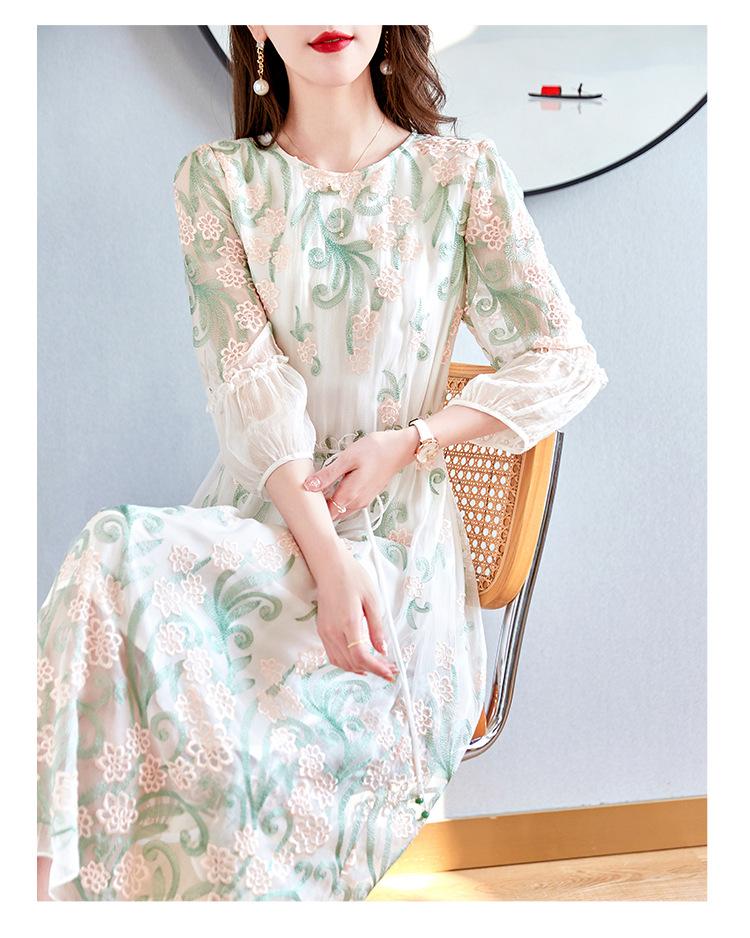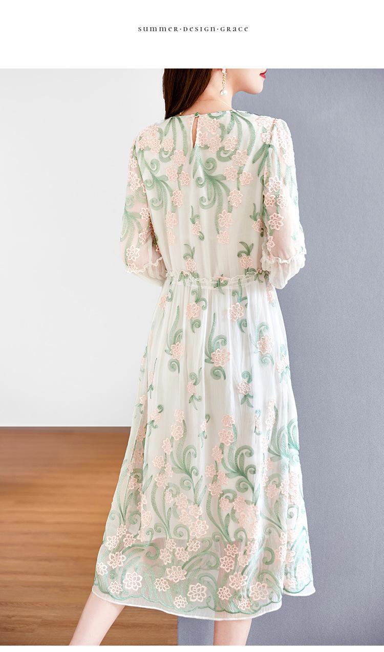 [Oferta Especial por Tiempo Limitado] Vestido de Seda Bordado para Mujer, Cintura Alta, Cuello Redondo, Falda Midi de Seda de Morera 82399657