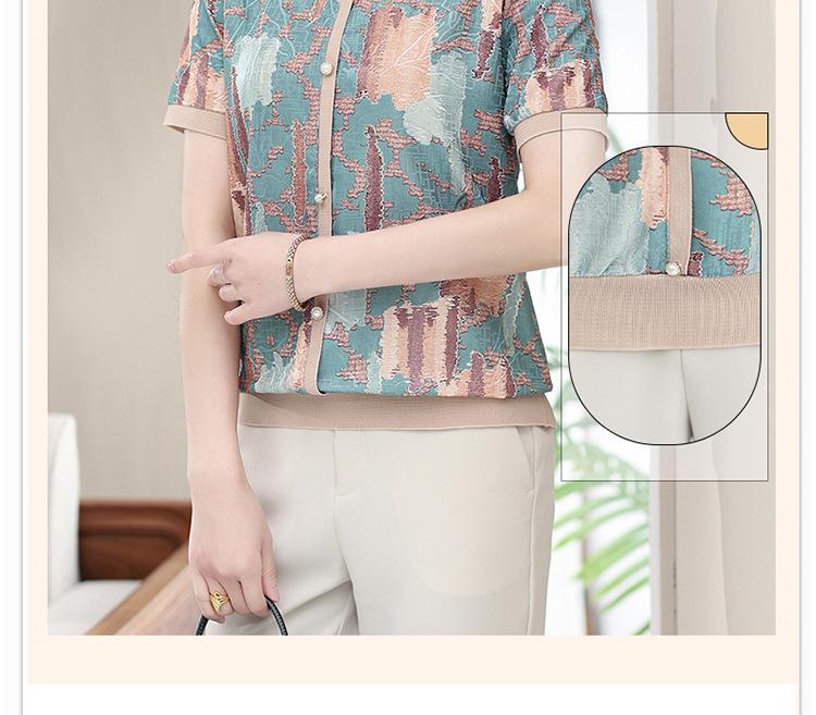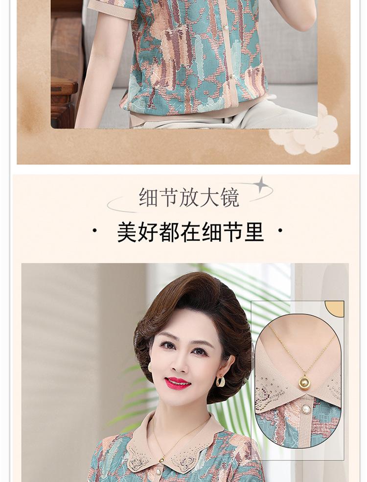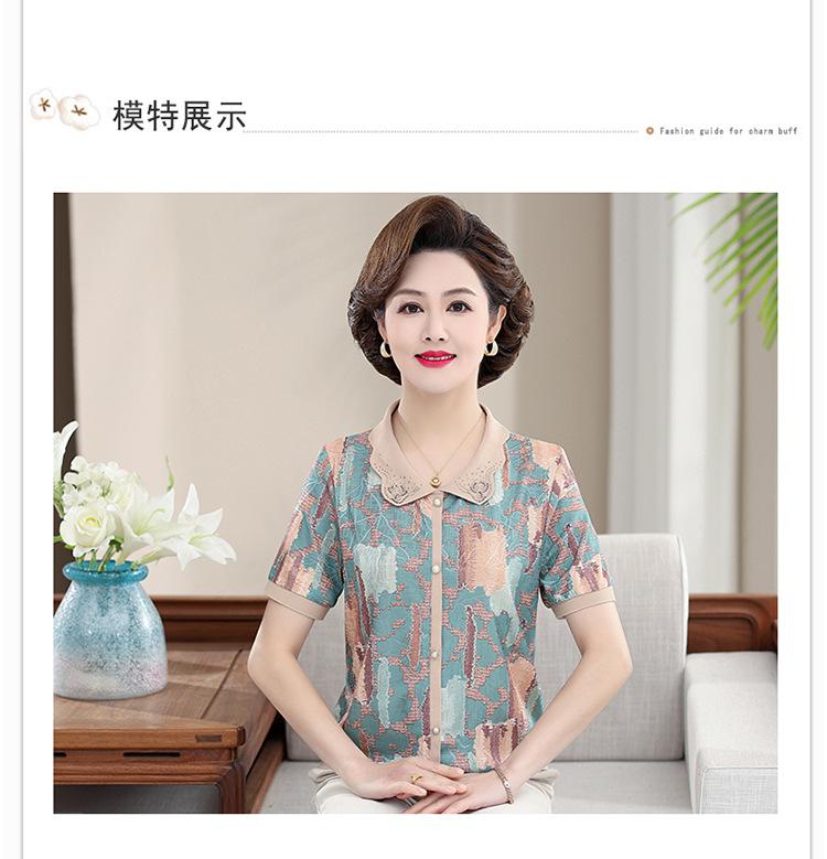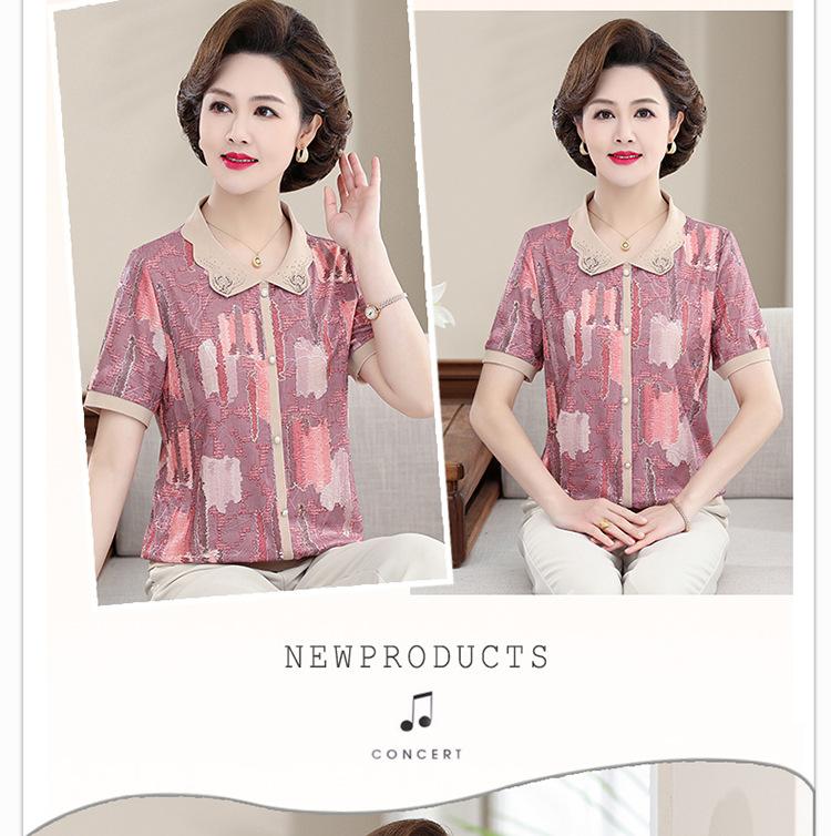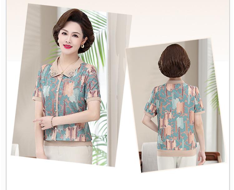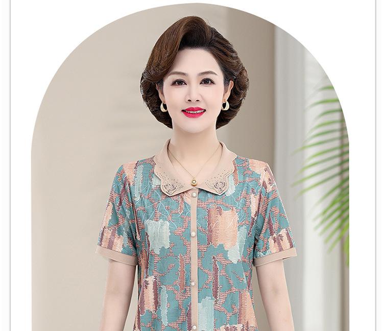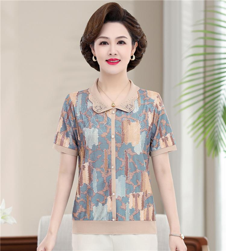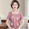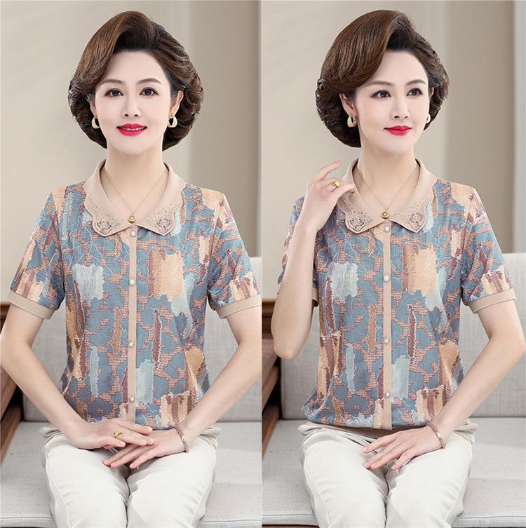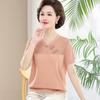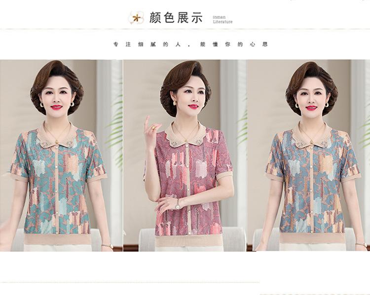 Ropa de verano para mujeres de mediana edad y mayores, nueva camiseta de punto, base fina, moda de madre, camisa de seda helada de verano para mujer