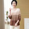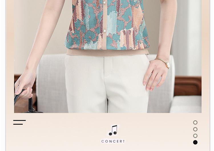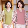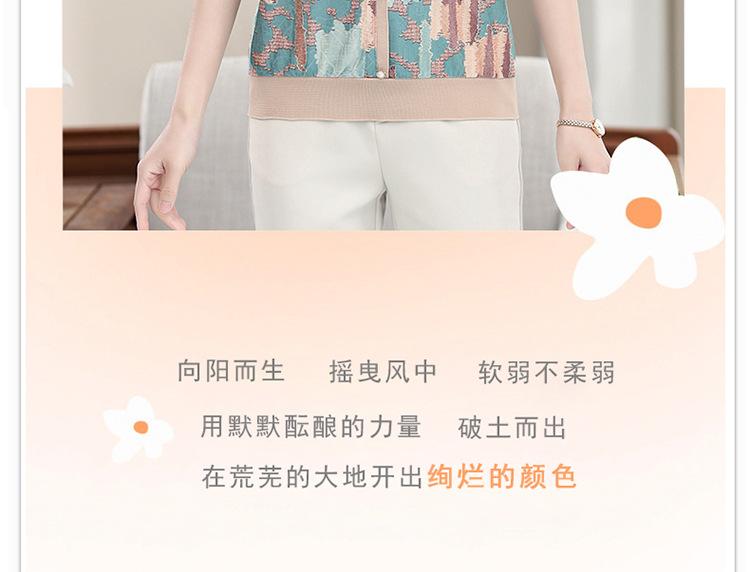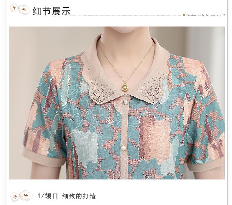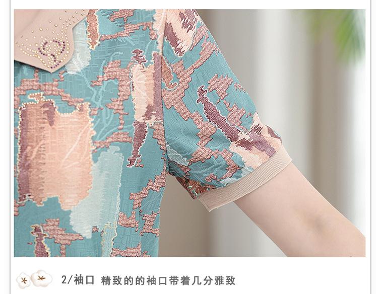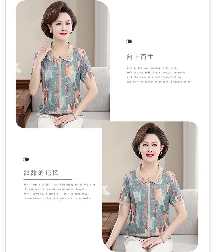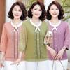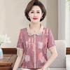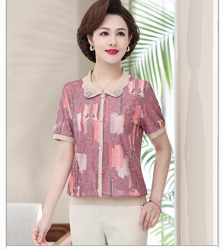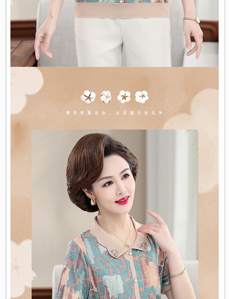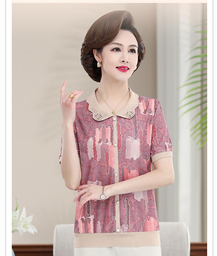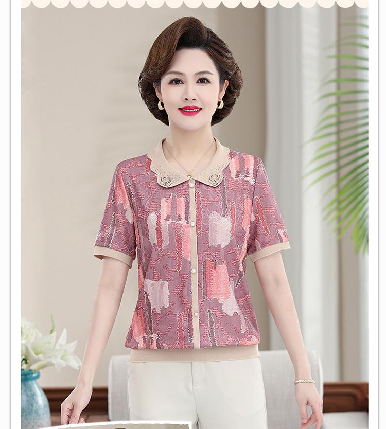 Ropa de verano para mujeres de mediana edad y mayores, nueva camiseta de punto, base fina, moda de madre, camisa de seda helada de verano para mujer