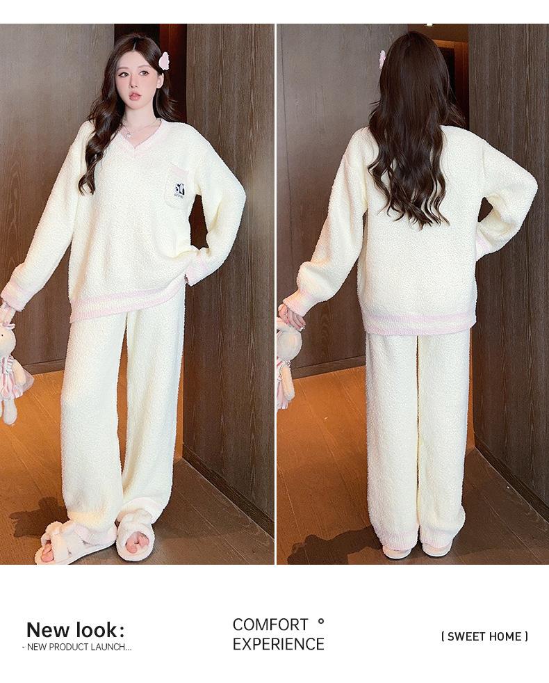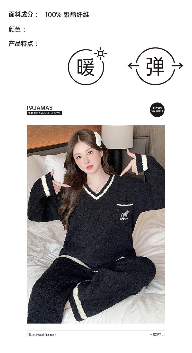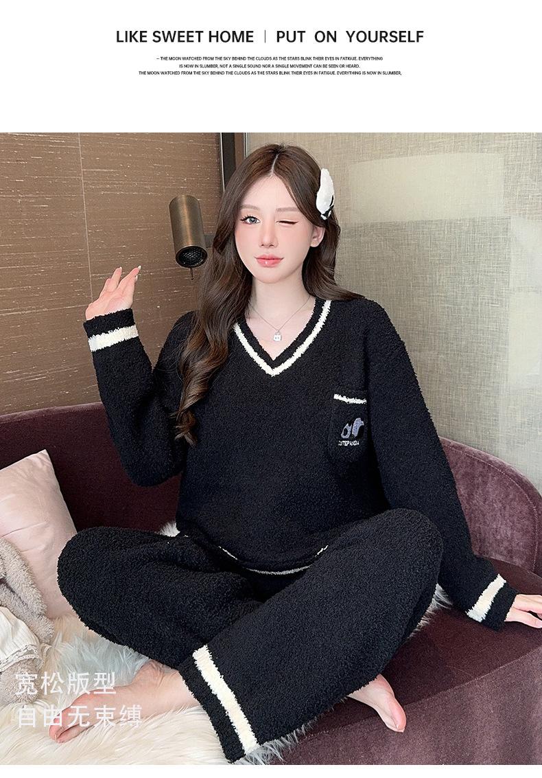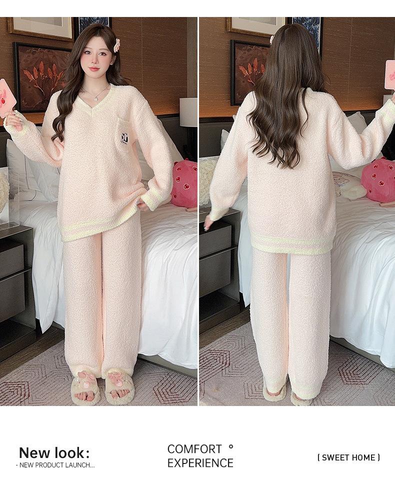 Pijama de medio terciopelo para mujer, otoño e invierno, forro polar grueso, 2024, nuevo jersey, ropa de casa, traje cálido