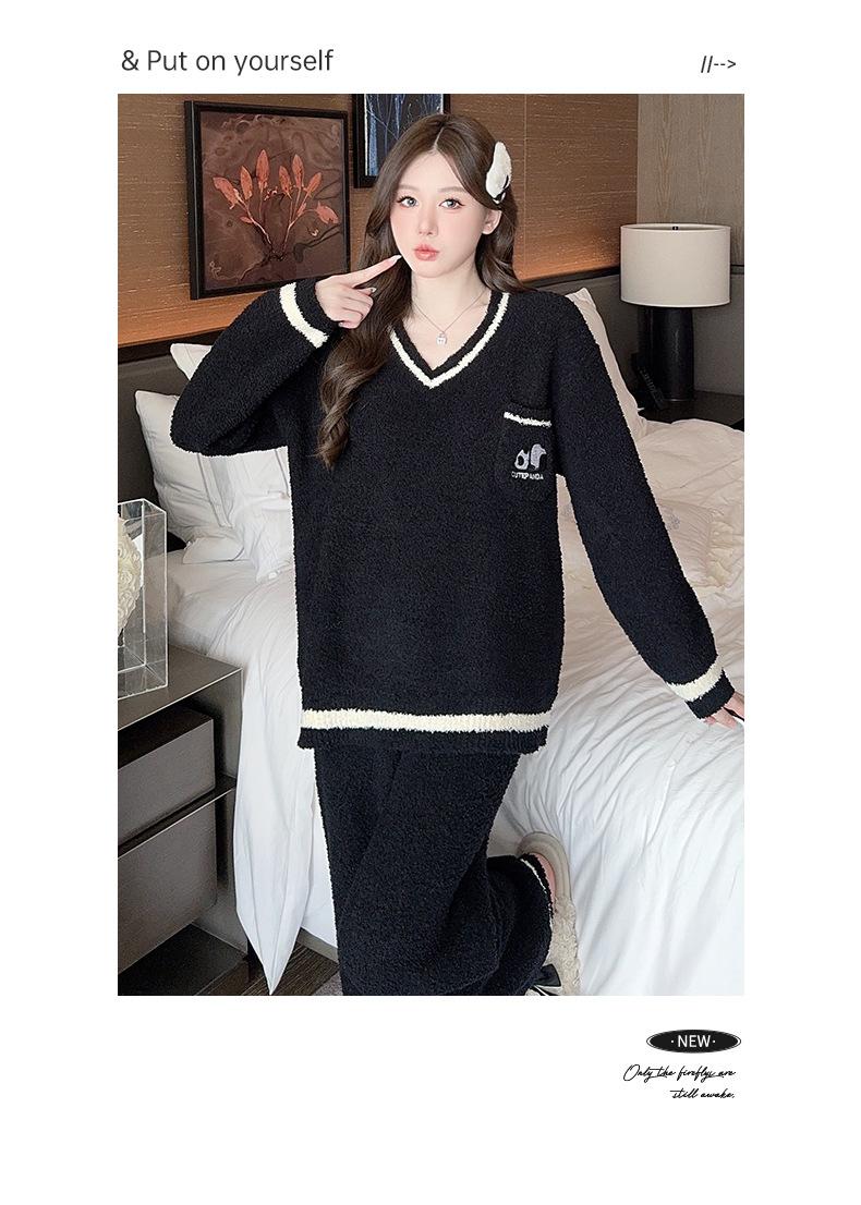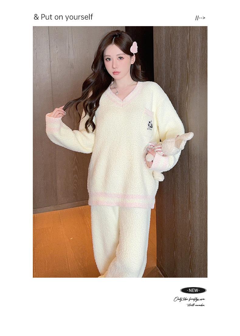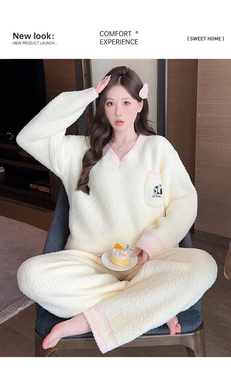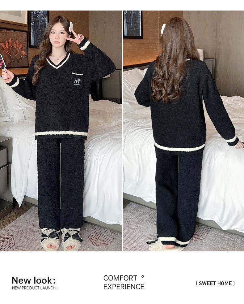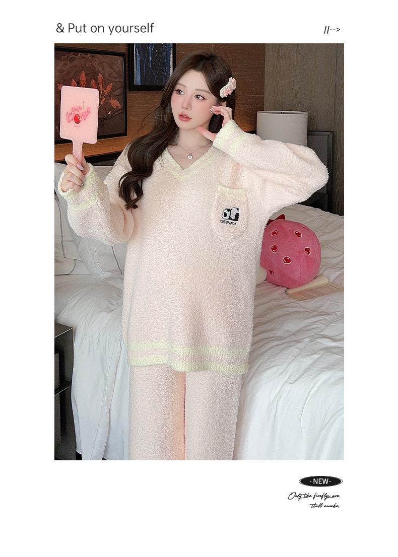 Pijama de medio terciopelo para mujer, otoño e invierno, forro polar grueso, 2024, nuevo jersey, ropa de casa, traje cálido