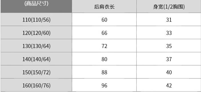 110cm, 120cm, 130cm, 140cm, 150cm, 160cm