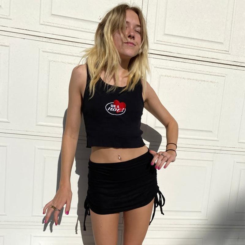 Chaleco pequeño ajustado sexy sin mangas con bordado en forma de corazón, estilo europeo y americano, para verano y otoño de 2024