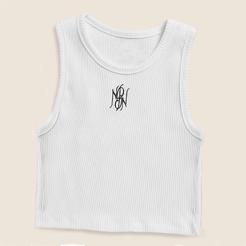 Verano y Otoño Calle Principal Estilo Harajuku Bordado Geométrico Ins Ombligo Descubierto Sexy Trendy Jersey Corto de Punto para Mujer